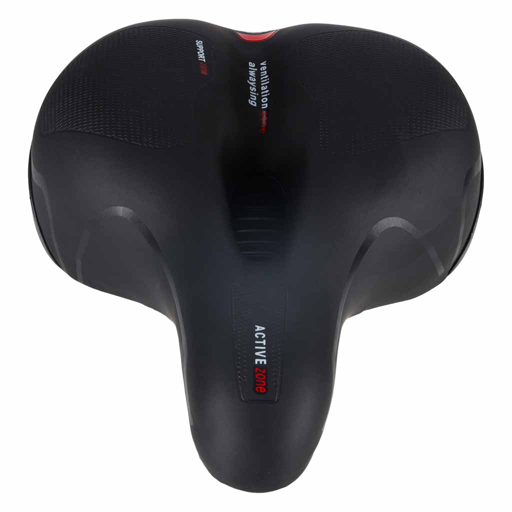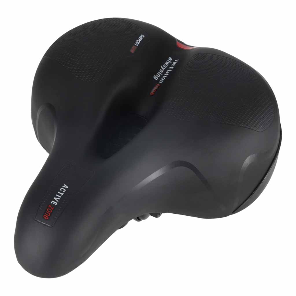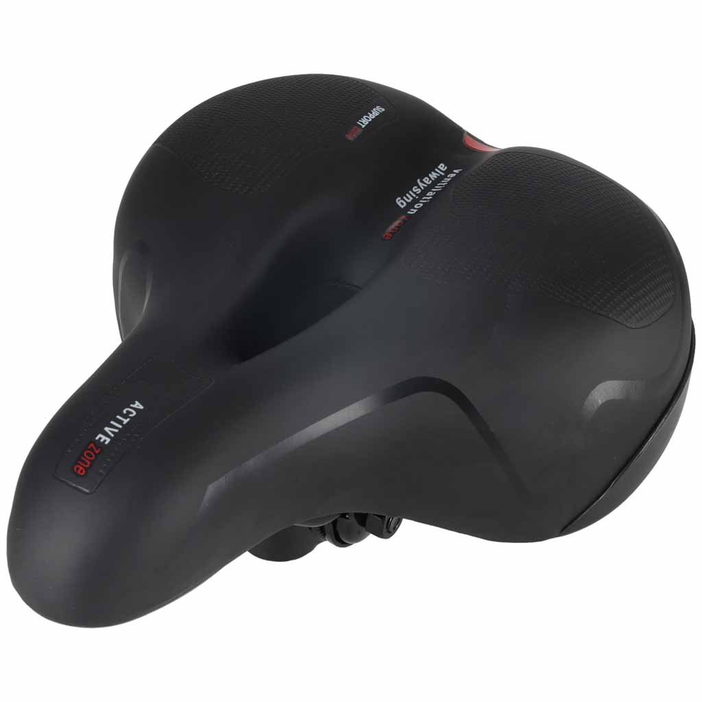 STABILNOŚĆ I WENTYLACJA PODCZAS JAZDY - Centralny kanał wentylacyjny poprawia cyrkulację powietrza, co ma duże znaczenie podczas cieplejszych dni i dłuższych przejazdów. Konstrukcja siodełka zapewnia pewne i stabilne podparcie, wspierając prawidłowe ułożenie ciała. Zastosowane sprężyny dodatkowo redukują drgania, poprawiając kontrolę nad rowerem na nierównych nawierzchniach.