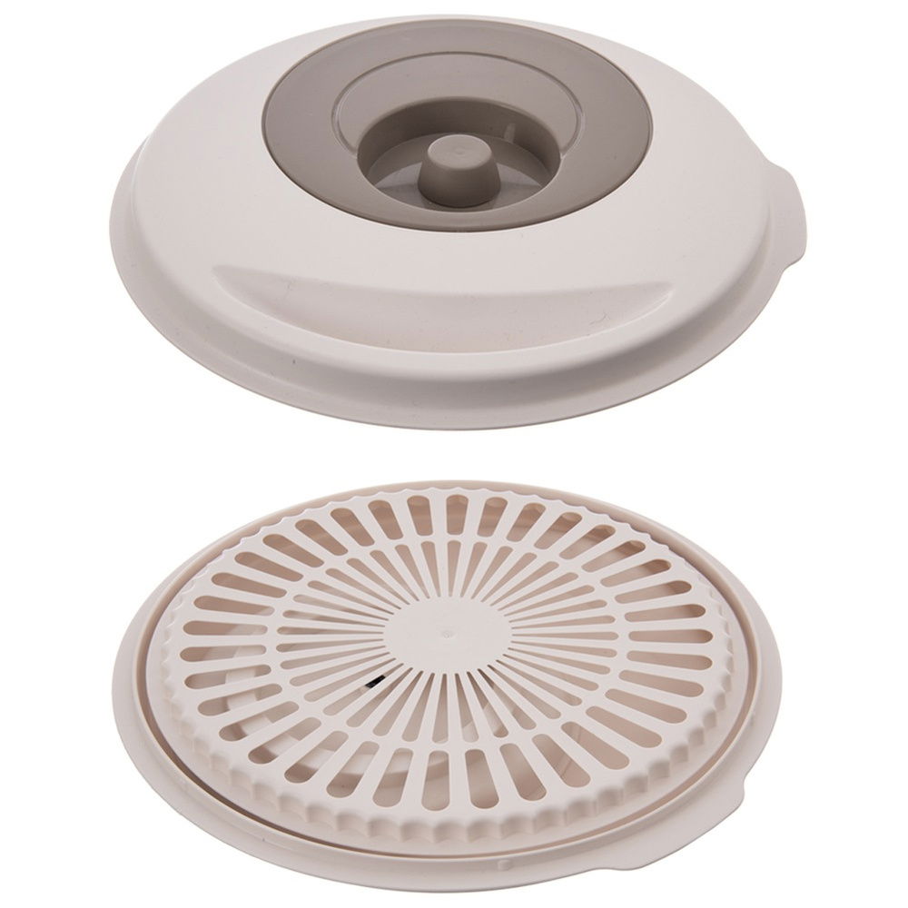 Solidna i wytrzymała - Misa wykonana z wytrzymałego tworzywa w przezroczystym kolorze. Koszyk w kolorze beżowym, a pokrywka w białym kolorze z elementami beżowymi.