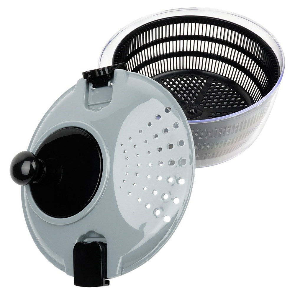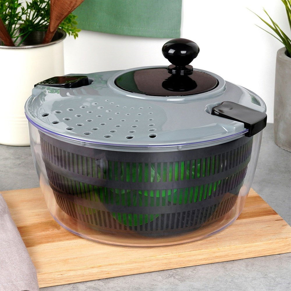 Praktyczna suszarka do sałaty to narzędzie przydatne w każdym domu. Ułatwia przygotowywanie świeżych sałatek i innych potraw z warzywami liściastymi. Sprawdzi się także do suszenia warzyw, owoców czy ziół. Wirówka znacznie skraca czas suszenia sałaty w porównaniu z tradycyjnym osuszaniem ręcznikiem papierowym. Dzięki pokrętłu w pokrywie, usunięcie nadmiaru wody z sałaty jest szybkie i skuteczne.