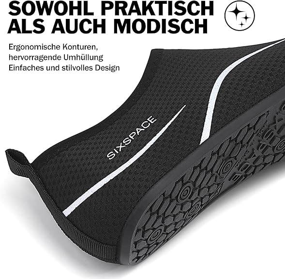 Podeszwa wykonana jest z antypoślizgowej gumy. Dzięki temu możesz cieszyć się pocieszeniem w wodzie, na siłowni i na plaży. Miękkie i elastyczne.