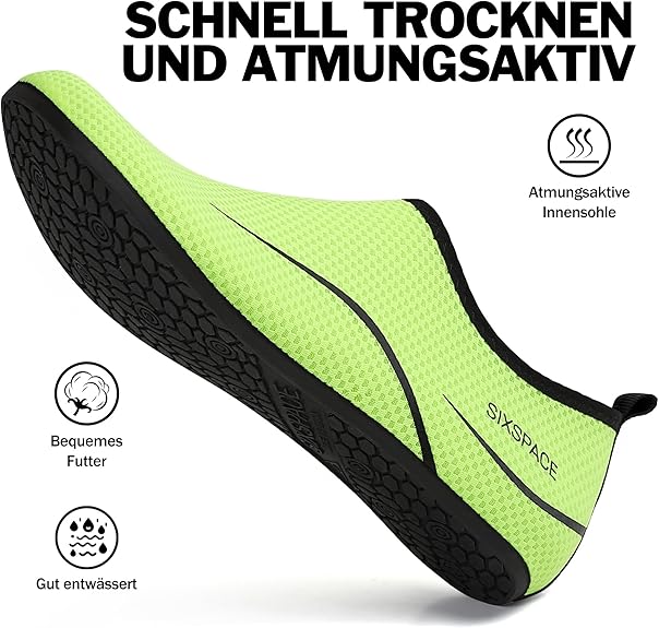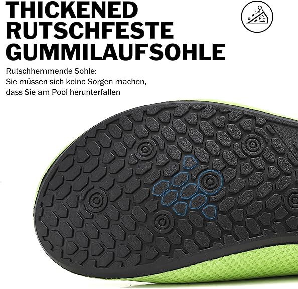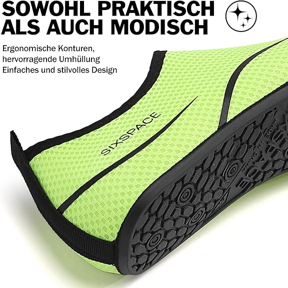 Podeszwa wykonana jest z antypoślizgowej gumy. Dzięki temu możesz cieszyć się pocieszeniem w wodzie, na siłowni i na plaży. Miękkie i elastyczne.