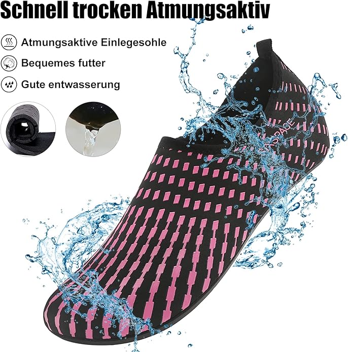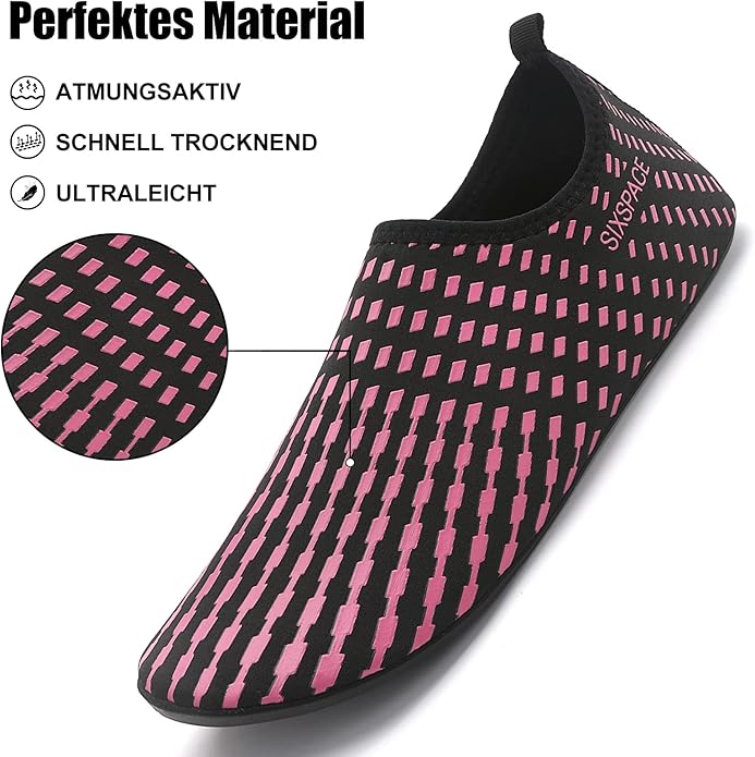 Podeszwa wykonana jest z antypoślizgowej gumy. Dzięki temu możesz cieszyć się pocieszeniem w wodzie, na siłowni i na plaży. Miękkie i elastyczne.