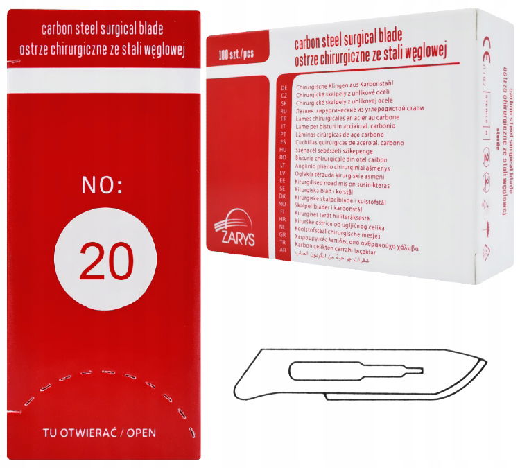 Skalpele ostrza chirurgiczne modelarskie nożyki NR 20 sterylne ZARYS 100szt