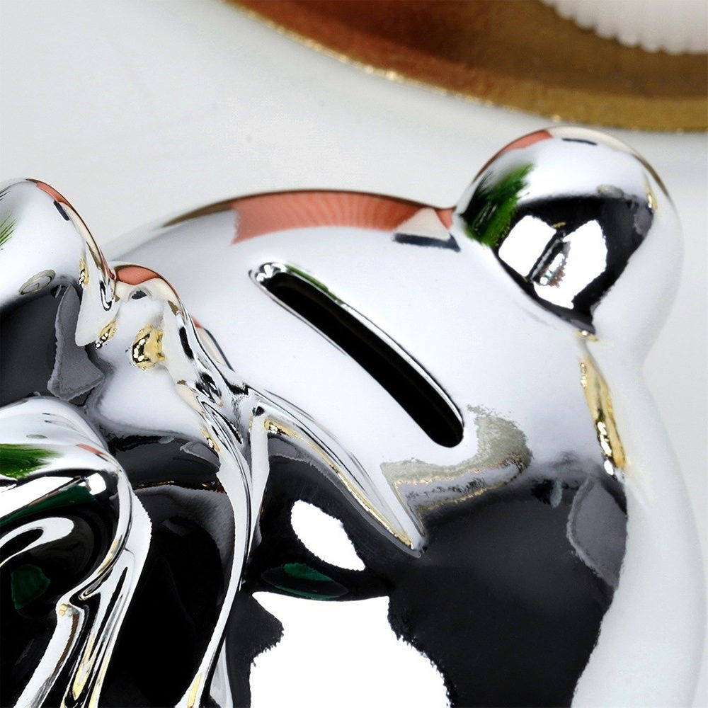 Wykonana z ceramiki z lustrzanym wykończeniem - Elegancka skarbonka wykonana z ceramiki pokrytej lustrzaną powłoką w srebrnym kolorze, która nadaje jej wyjątkowy blask i nowoczesny wygląd. Lustrzany połysk dodaje produktowi luksusowego wyglądu.