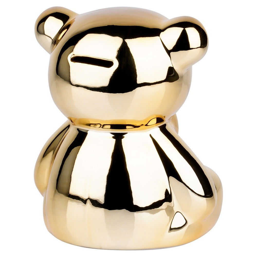 Efektowna skarbonka w kształcie misia. Idealna dla wszystkich osób, które chcą rozpocząć proces oszczędzania. Doskonale sprawdzi się do zbierania banknotów lub monet. Solidnie wykonana, stanowi element dekoracyjny. Skarbonka świetnie sprawdzi się na prezent.