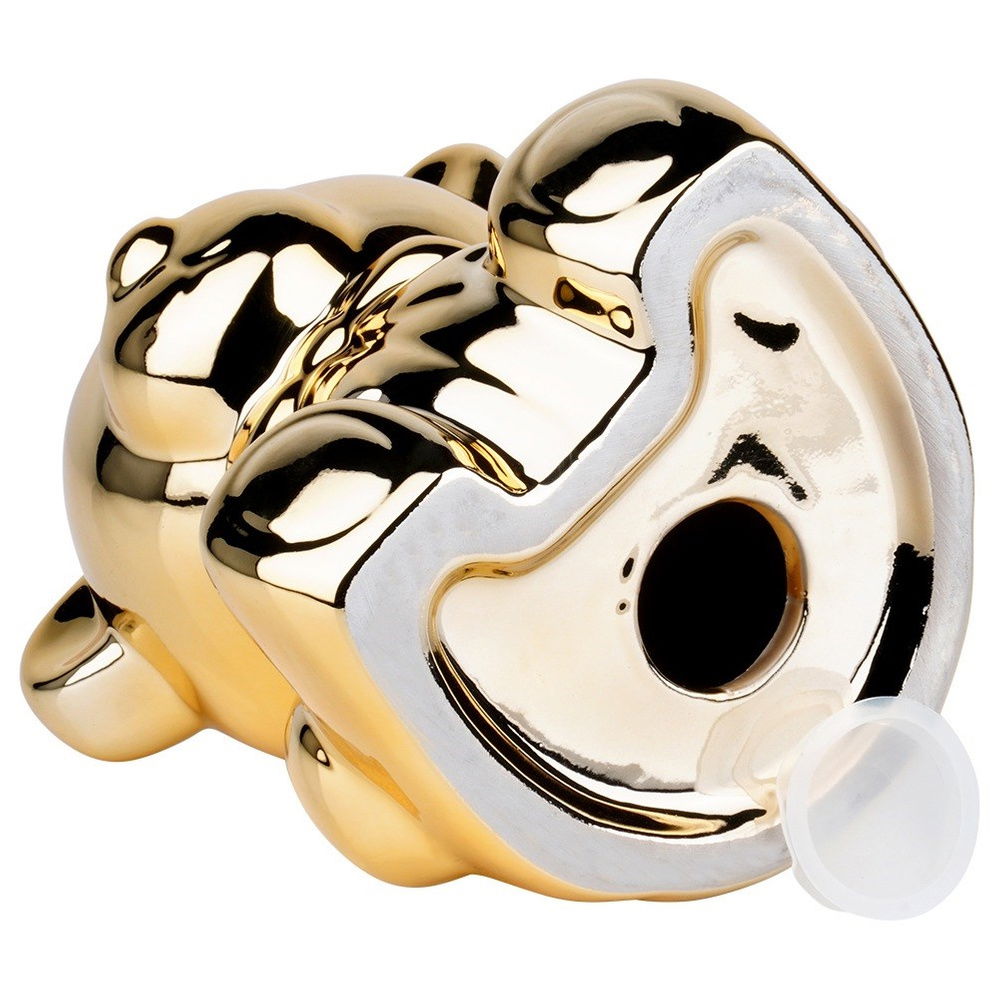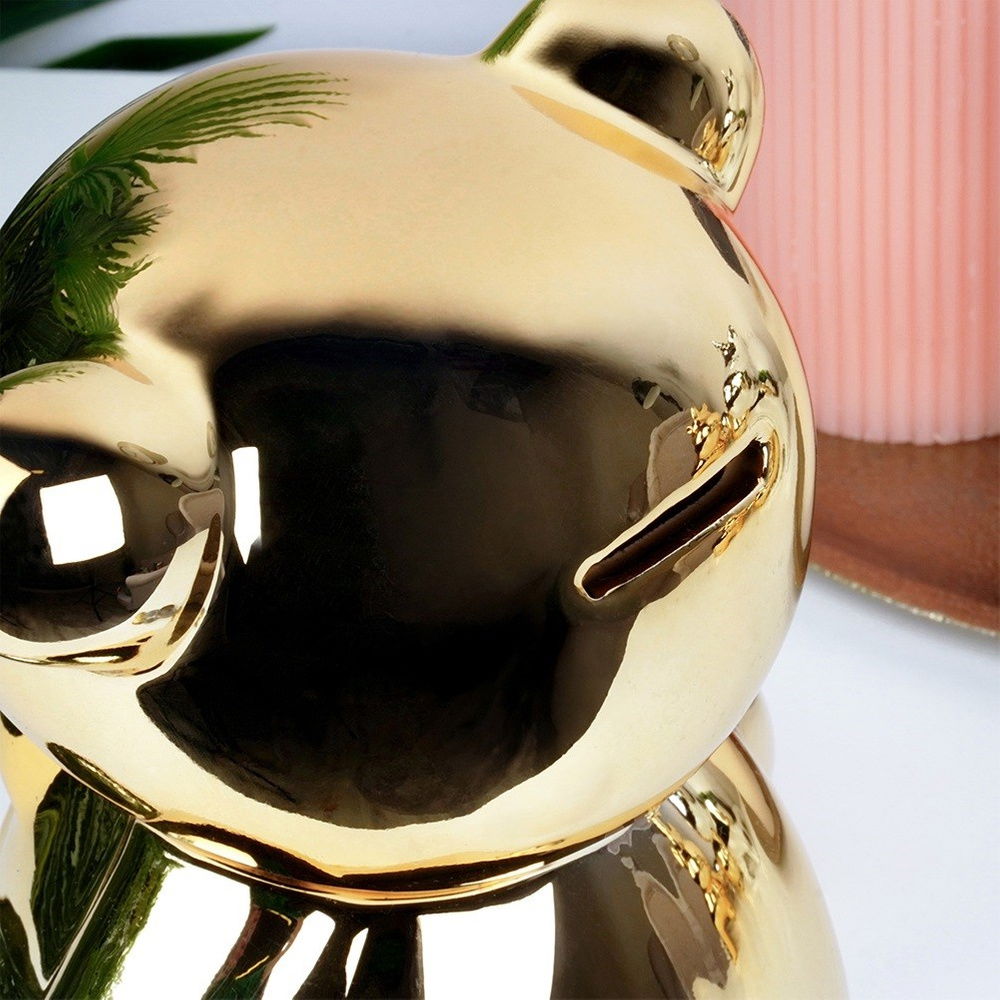 Wykonana z ceramiki z lustrzanym wykończeniem - Elegancka skarbonka wykonana z ceramiki pokrytej lustrzaną powłoką w złotym kolorze, która nadaje jej wyjątkowy blask i nowoczesny wygląd. Lustrzany połysk dodaje produktowi luksusowego wyglądu.