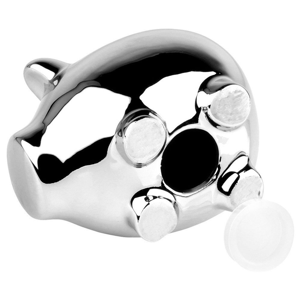 Wykonana z ceramiki z lustrzanym wykończeniem - Elegancka skarbonka wykonana z ceramiki pokrytej lustrzaną powłoką w srebrnym kolorze, która nadaje jej wyjątkowy blask i nowoczesny wygląd. Lustrzany połysk dodaje produktowi luksusowego wyglądu.