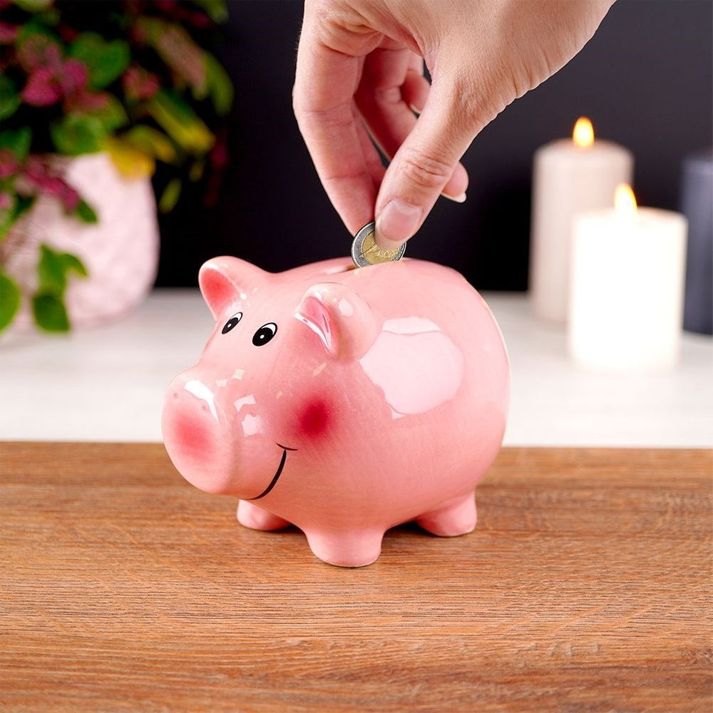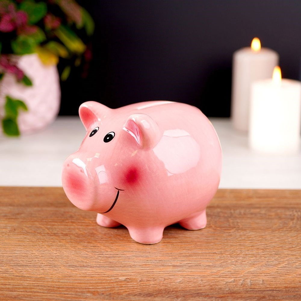 Skarbonka w kształcie świnki. Idealna dla wszystkich osób, które chcą rozpocząć proces oszczędzania. Solidnie wykonana, stanowi element dekoracyjny. Skarbonka świetnie sprawdzi się na prezent dla najbliższych.