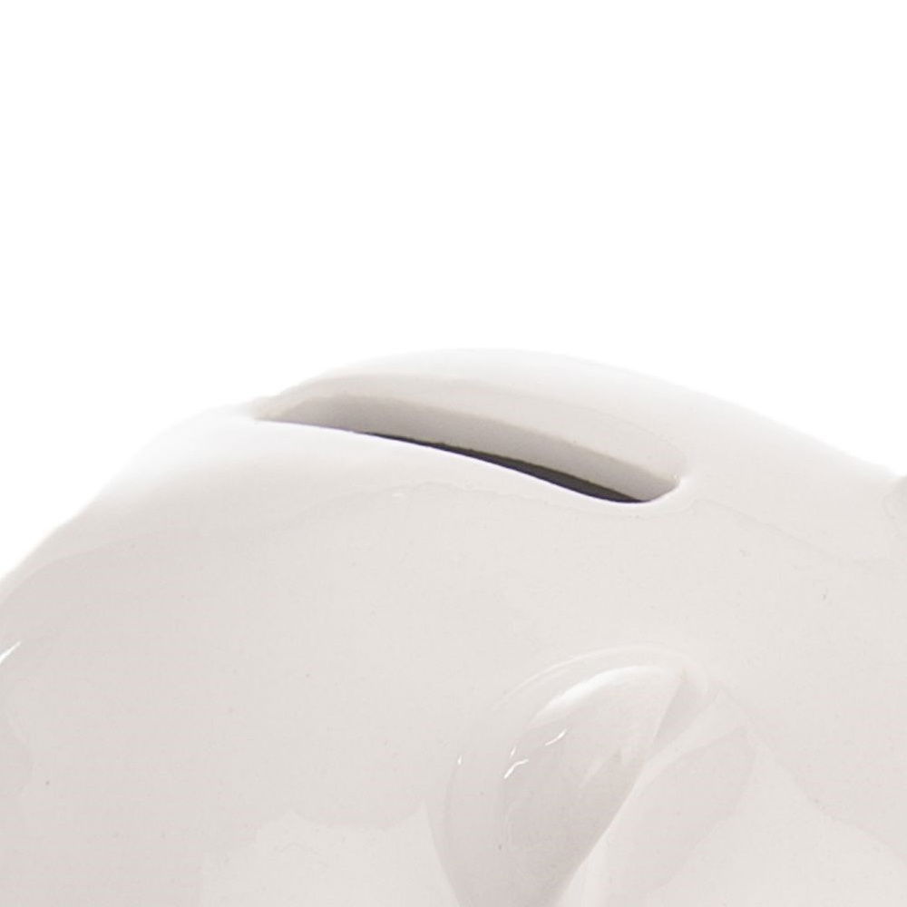 Świnka skarbonka o wymiarach 9 x 7,5 x 8 cm. Wykonana z najwyższej jakości ceramiki w kolorze białym. Posiada motyw koniczynki. Skarbonka świetnie sprawdzi się na prezent dla najbliższych, będzie świetną okazją by nauczyć dzieci oszczędzania, gdyż nie posiada otworu, który umożliwi wyjmowanie pieniędzy podczas oszczędzania. Jedyną możliwością wyjęcia pieniędzy jest rozbicie jej.