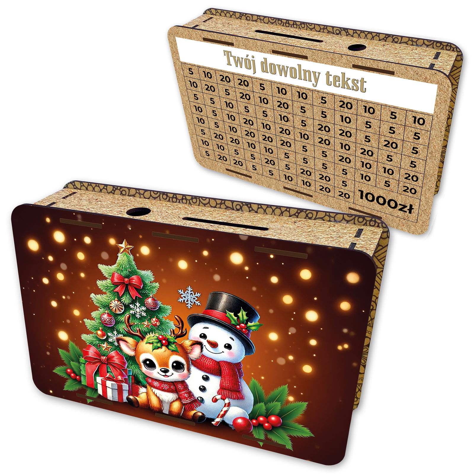 - Skarbonka Wykreślanka z wygrawerowanym Twoim tekstem i motywem śiątecznym