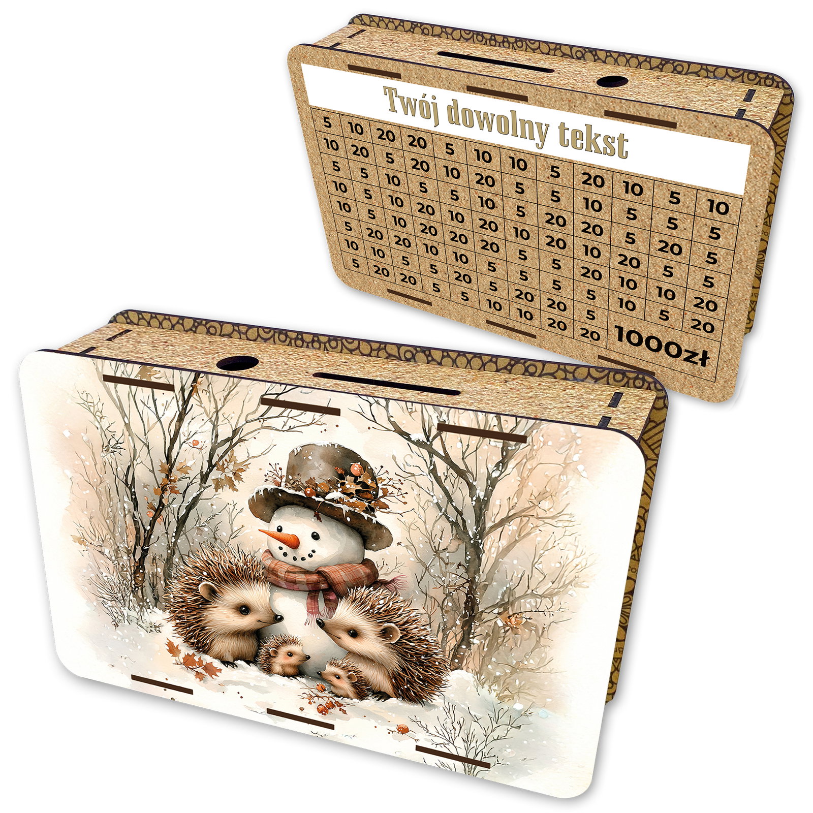 - Skarbonka Wykreślanka z wygrawerowanym Twoim tekstem i motywem śiątecznym