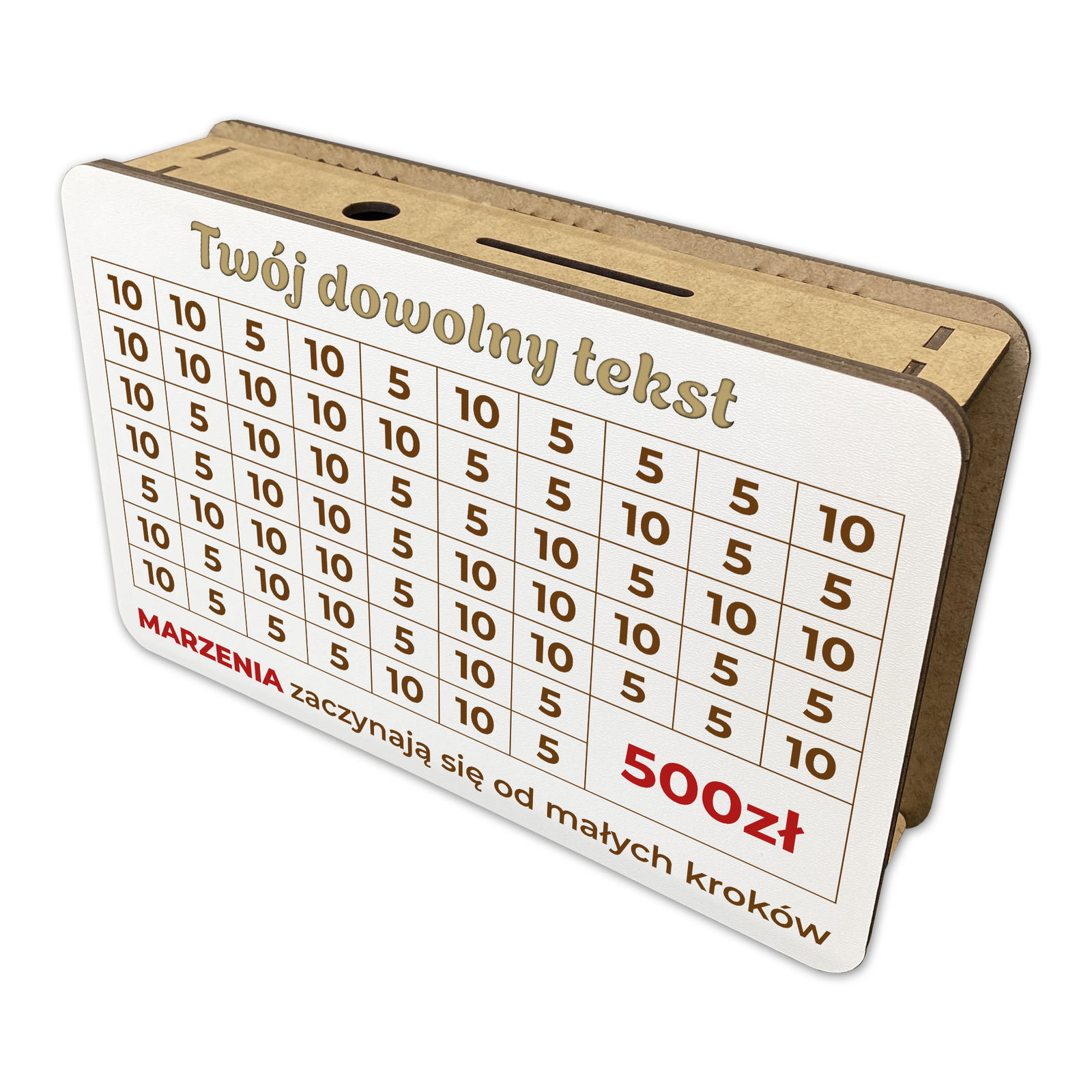 Skarbonka wykreślana wyzwanie oszczędzanie twój dowolny tekst Cel 500 zł