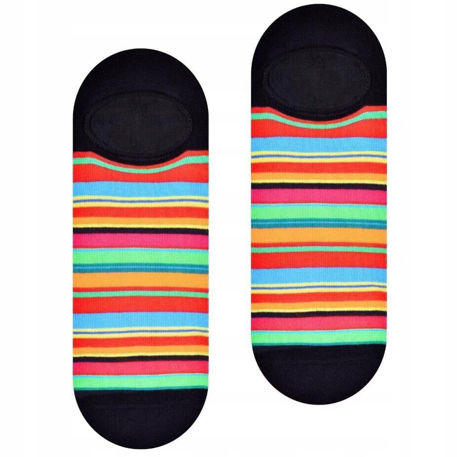 Bawełniane stopki w stylu folk łowickim - pasiaki na czarnym tle