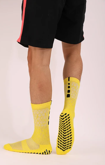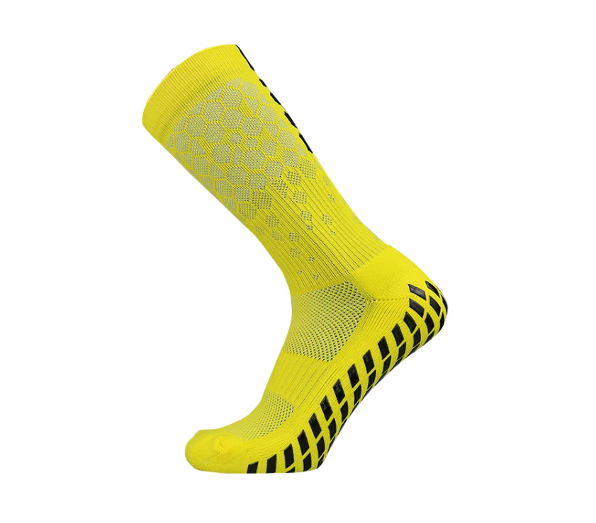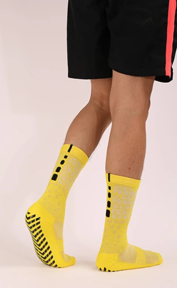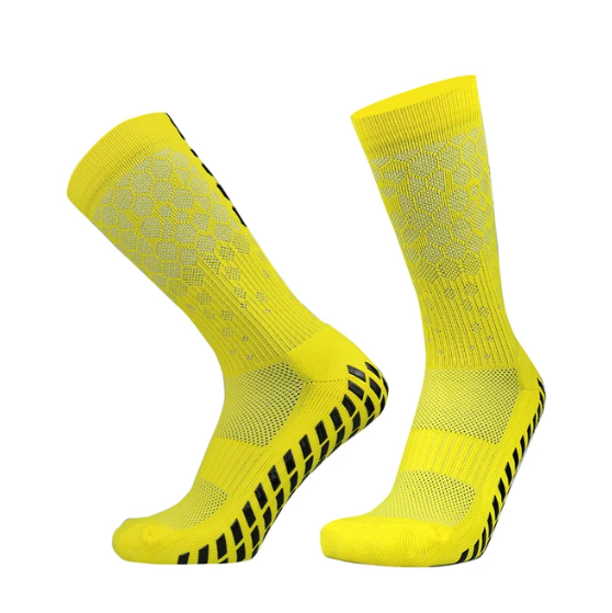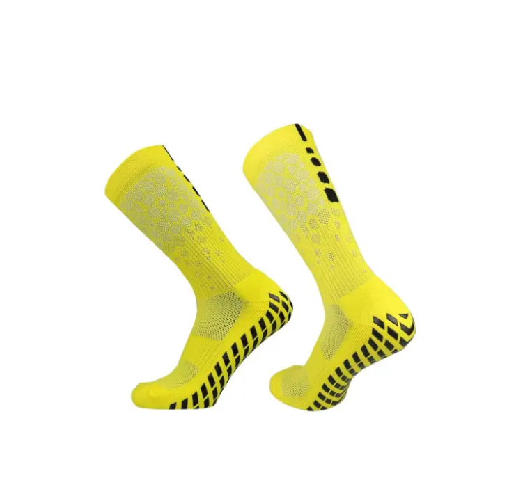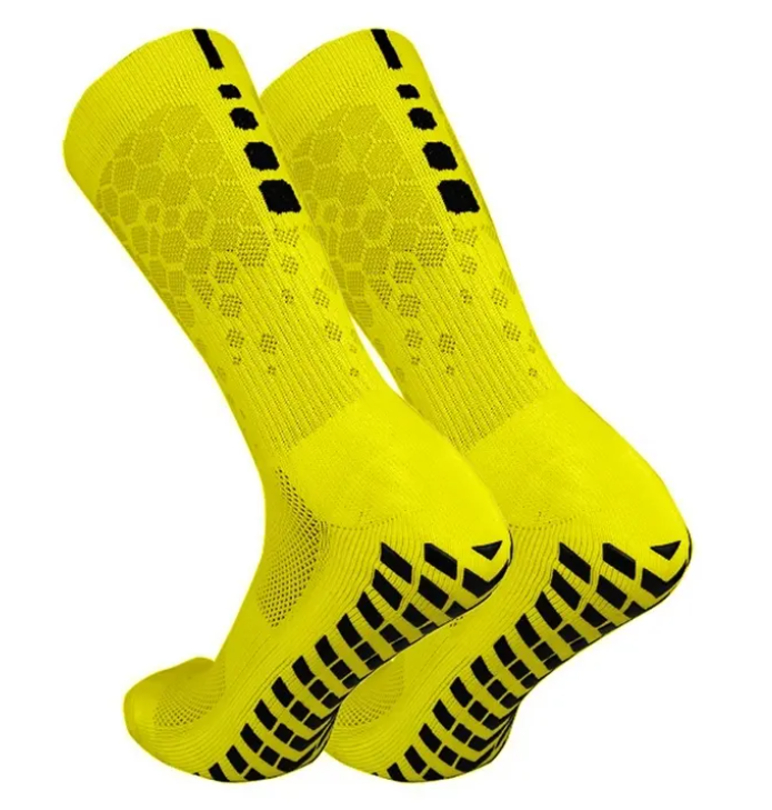 Skarpety piłkarskie FG z antypoślizgowymi kropkami silikonowymi. Zwiększają przyczepność i zwrotność na boisku. Unikalny design, rozmiar 39-45. Idealne dla entuzjastów sportu. Wykonane z chinlonu i spandexu - miękkie, wygodne i trwałe.