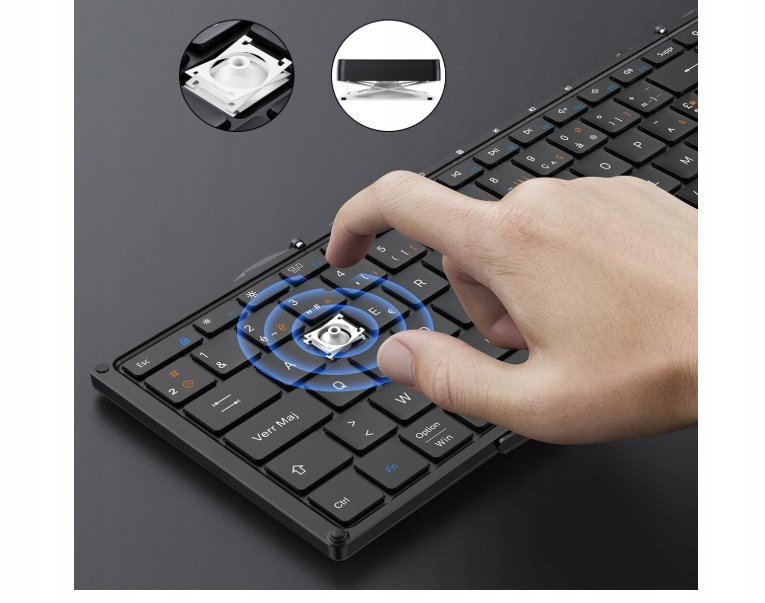- Opis klawiatury: AZERTY składana klawiatura Bluetooth