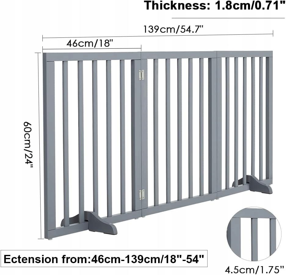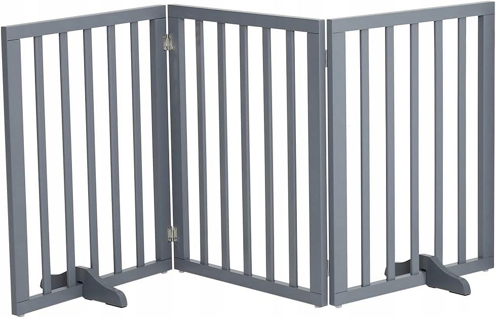 SKŁADANA BRAMKA DLA PSA 3-PANELOWA 60 CM Z STOPKAMI ANTYPOŚLIZGOWYMI SZARA