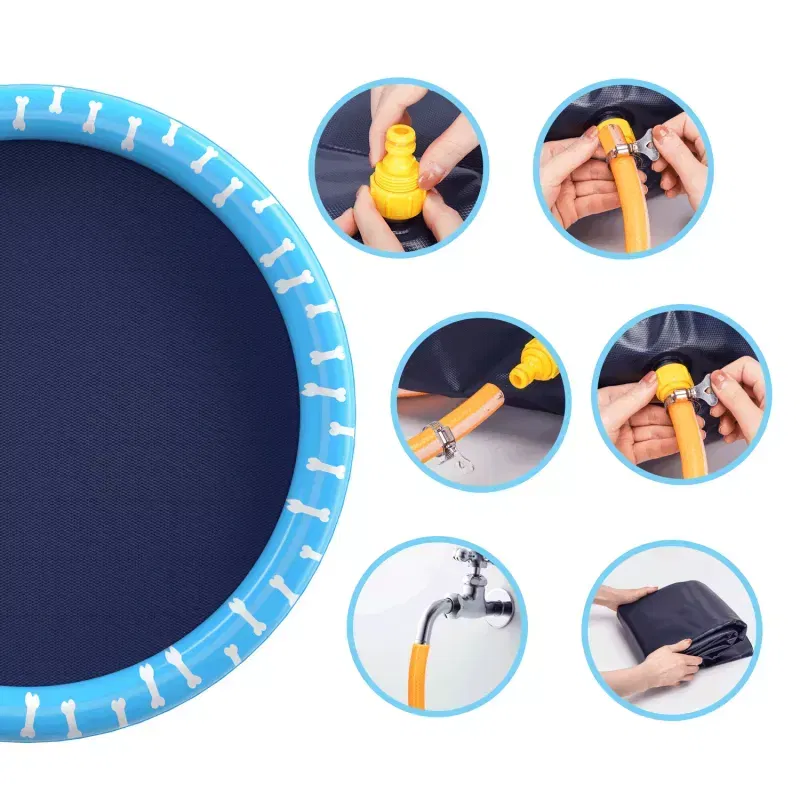 Mata do zabawy w wodzie nadaje się na tarasy, trawniki, zabawki ogrodowe, baseny, imprezy wodne na świeżym powietrzu. Zapewnia dużo miejsca dla dużych, średnich, małych psów i dzieci. Ciesz się chłodem ze swoim futrzanym przyjacielem w upalne lato.