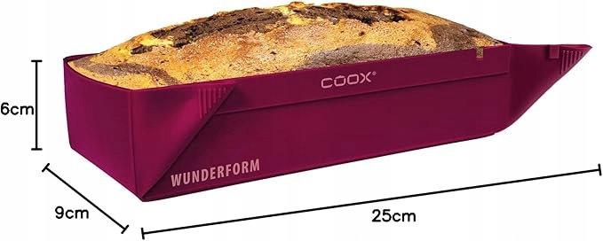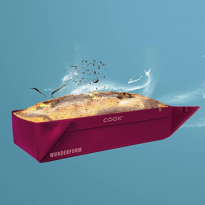 Wunderform Basic M to składana forma do pieczenia wykonana z wysokiej jakości silikonu, która łączy praktyczność, kompaktowość i łatwość czyszczenia. Dzięki innowacyjnej konstrukcji i metalowym wzmocnieniom, forma nie deformuje się podczas użytkowania, zapewniając stabilność w trakcie pieczenia. Jest idealna do wypieku chleba, ciast, lasagne, quiche, parfait czy innych potraw. Forma jest bezpieczna dla zdrowia, ponieważ nie zawiera BPA, a jej szeroki zakres temperatur roboczych (-40°C do +230°C) sprawia, że można ją używać w piekarniku, zamrażarce, a także myć w zmywarce.