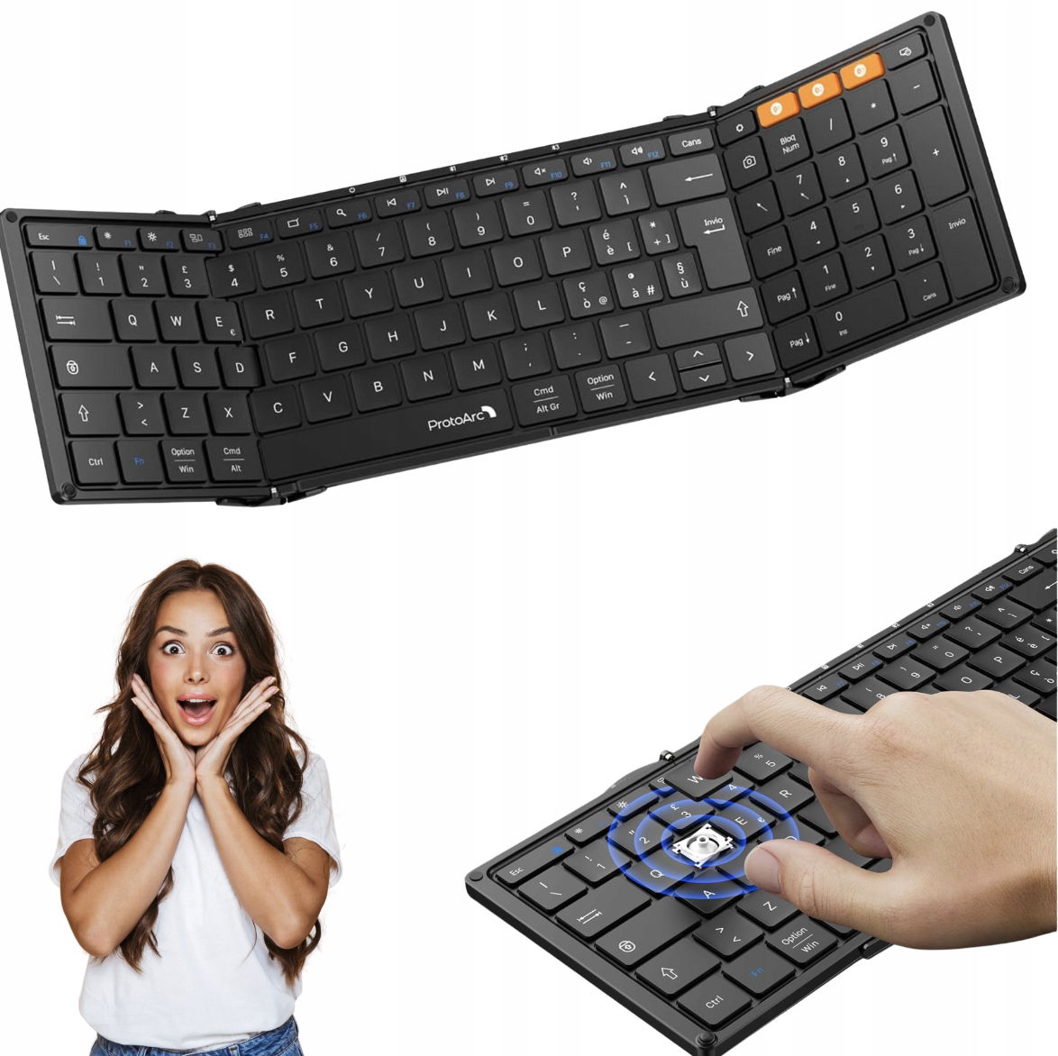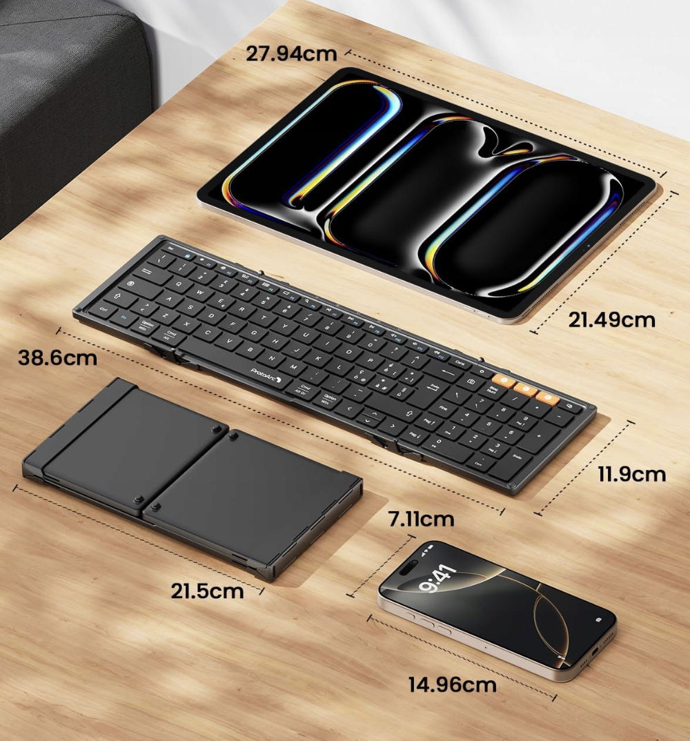 Poznaj ProtoArc XK01 – składaną, przenośną klawiaturę Bluetooth z włoskim układem QWERTY, idealną do pracy w podróży i w domu. Kompatybilna z systemami Android, iOS, Windows, świetnie sprawdzi się z iPadem, telefonem, tabletem, laptopem czy komputerem stacjonarnym.