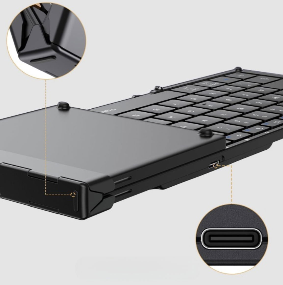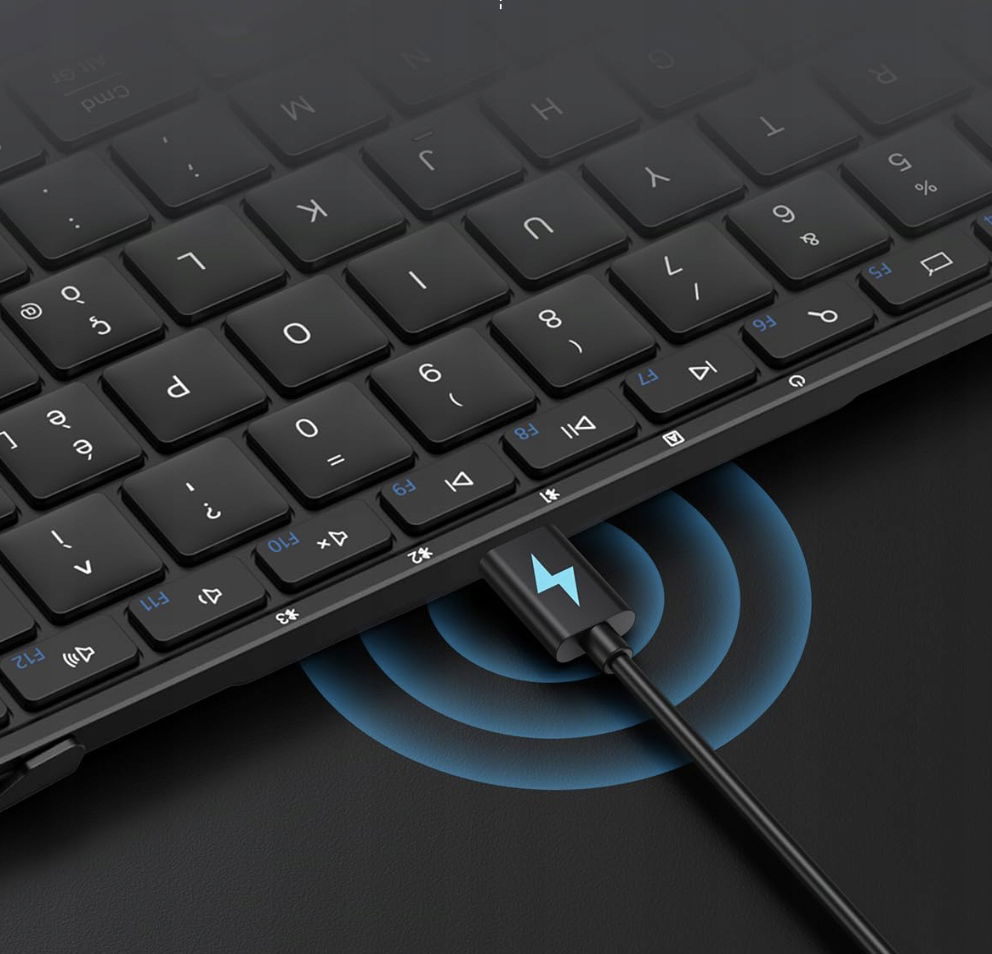Dzięki baterii 210 mAh składana klawiatura podróżna ma 5 miesięcy czuwania na jednym pełnym naładowaniu. (Uwaga: kabel do ładowania typu C w zestawie).