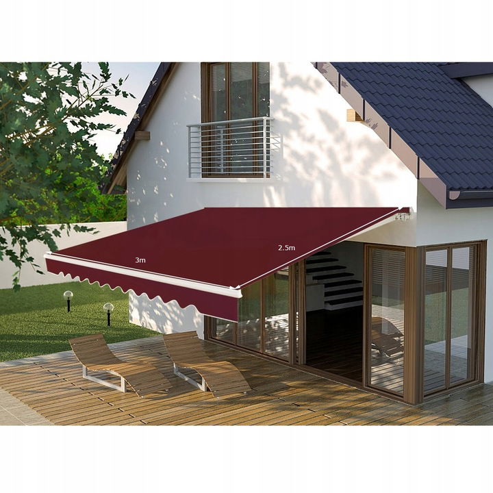 Łatwość montażu - markiza jest bardzo prosta w montażu (mocowanie do ściany). Wszystkie elementy potrzebne do instalacji zostały dołączone do zestawu