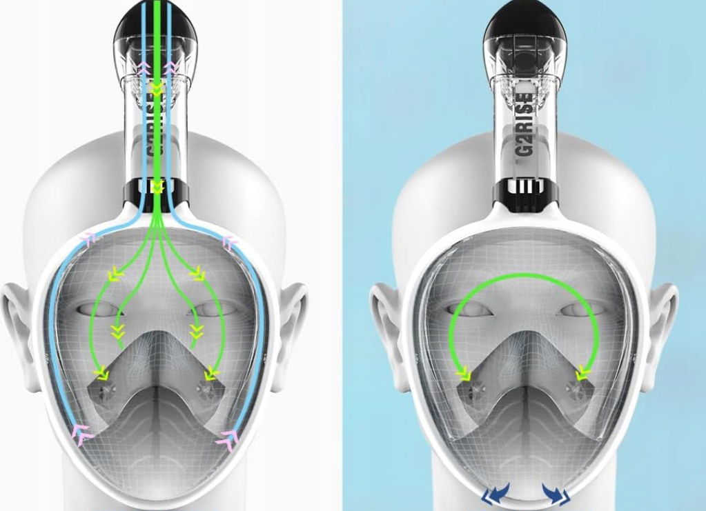 ✅ System anty-CO₂ – specjalna konstrukcja kanałów oddziela wdychane i wydychane powietrze, zapewniając bezpieczeństwo