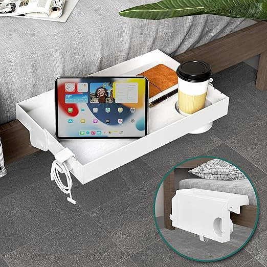 Składana półka nocna SPACEKEEPER z uchwytem na kubek i organizerem