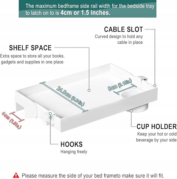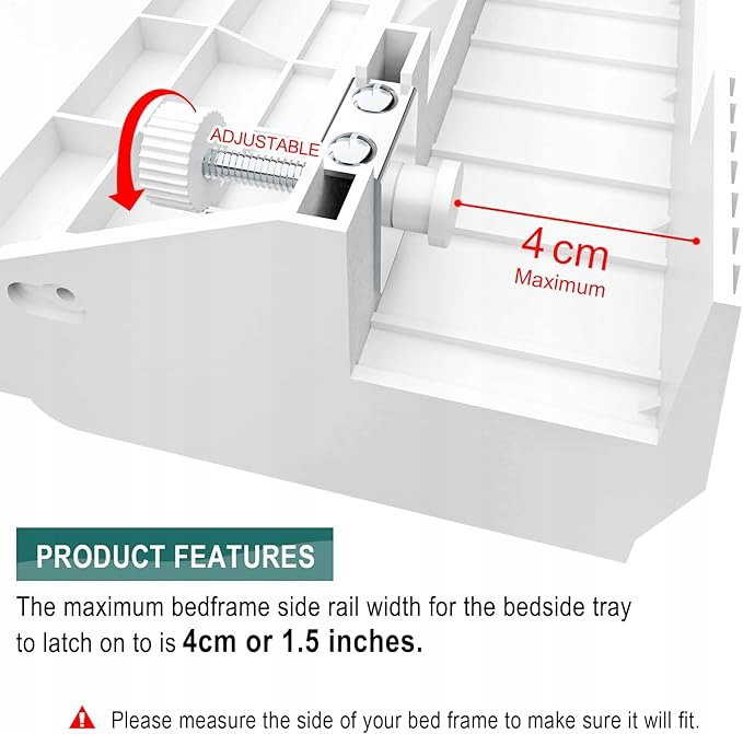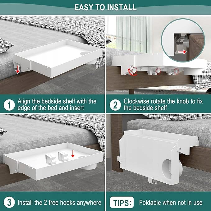✅ Łatwy montaż bez narzędzi – wystarczy przymocować tacę do ramy łóżka i dokręcić 3 pokrętła