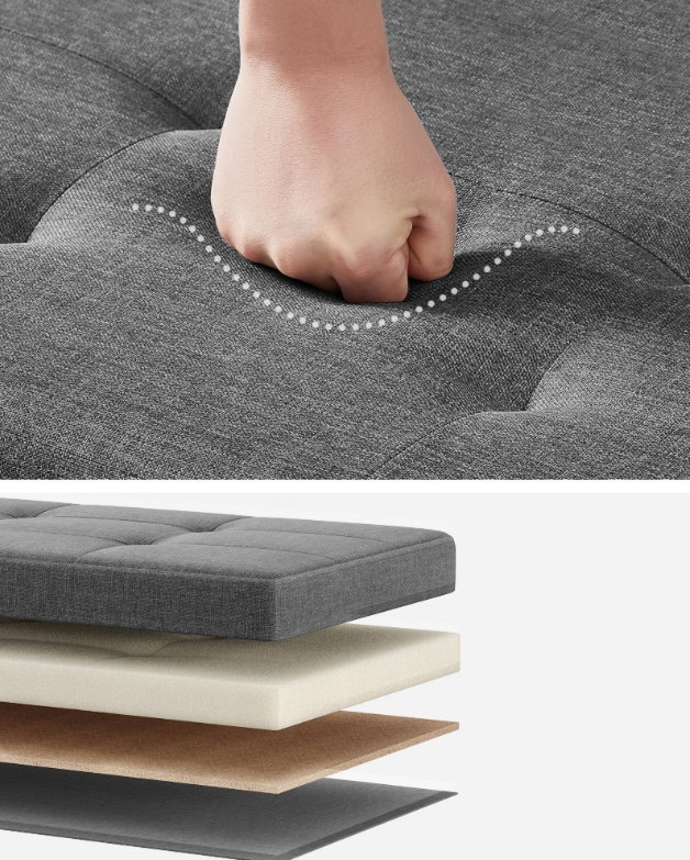 Wyściółka z pianki o grubości 5 cm zapewnia wygodę, a oddychająca osłona wykonana z szarej imitacji lnu zapewnia wygodę siedzenia.