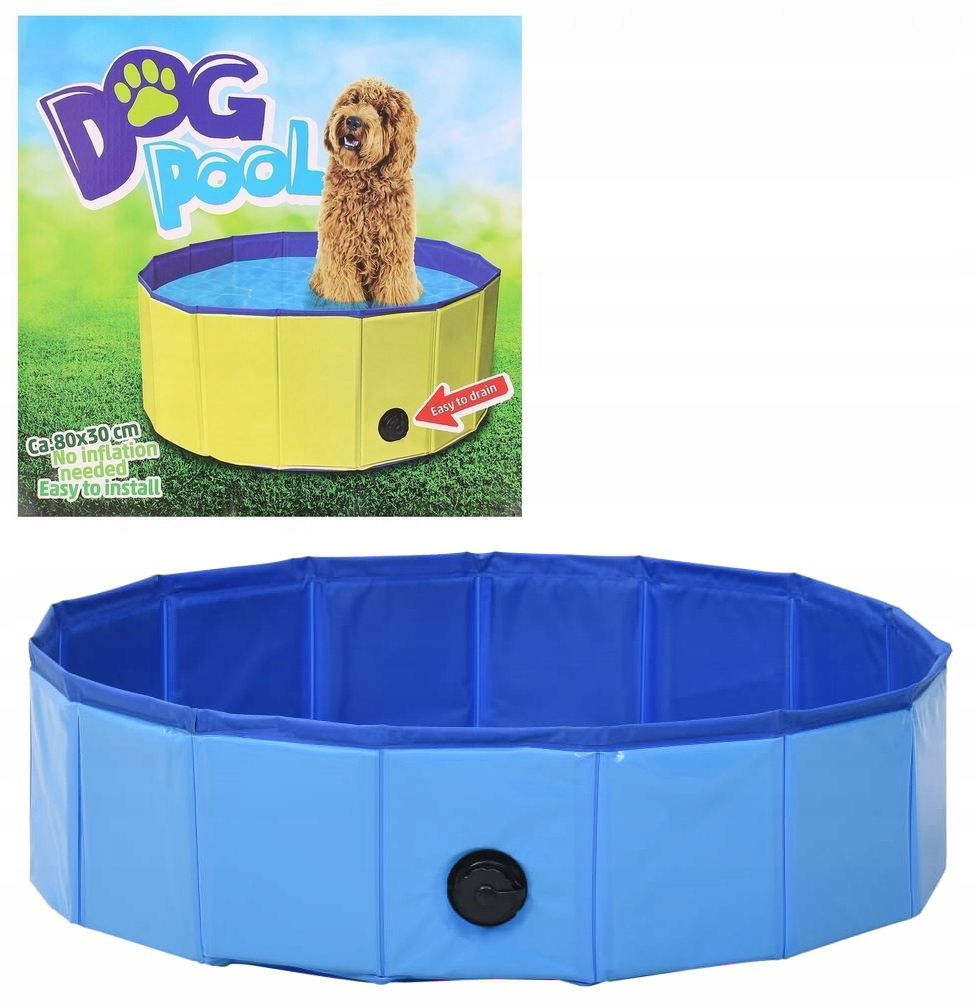 SKŁADANY BASEN ROZPOROWY OGRODOWY DLA PSA ZWIERZĄT 80x30 NA UPALNE DNI BLUE