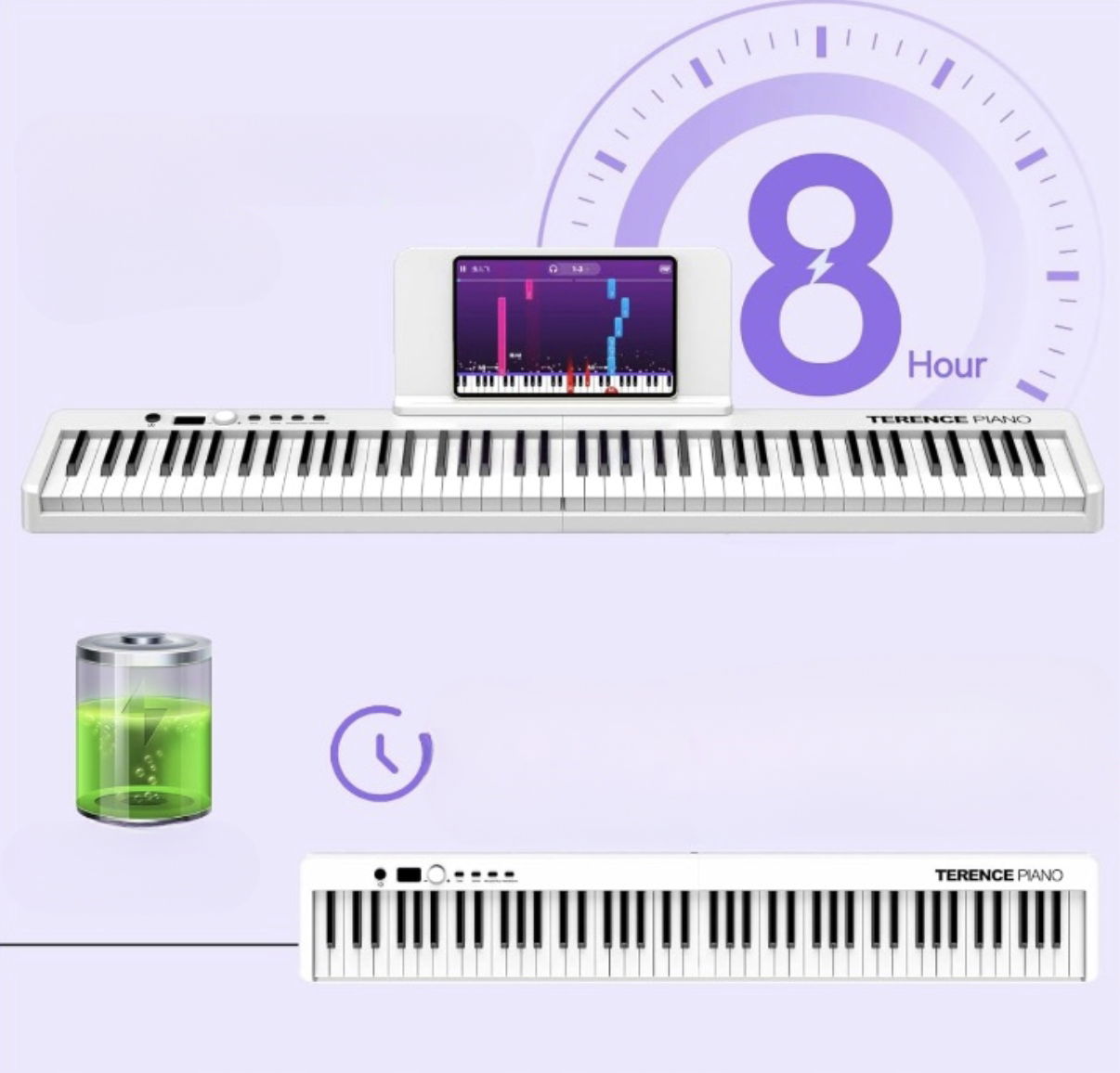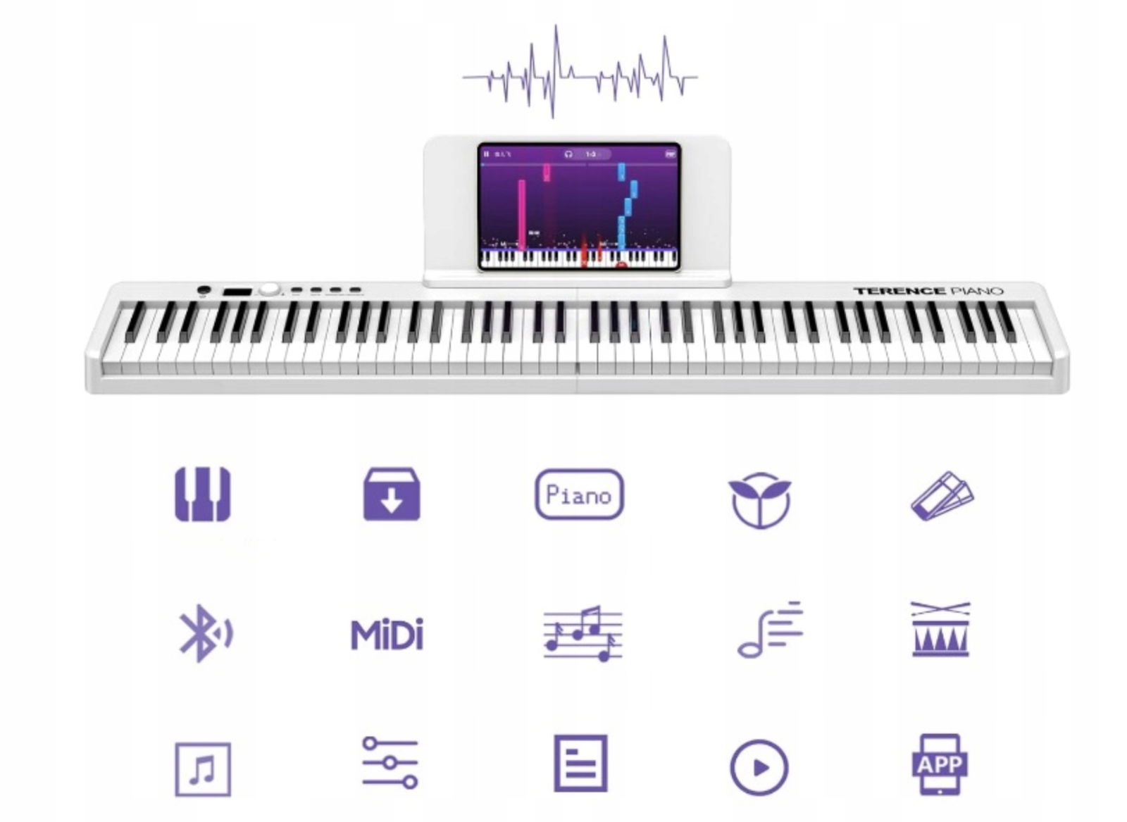 Składany cyfrowy fortepian z 88 półobciążonymi klawiszami TERENCE 1800 mAh