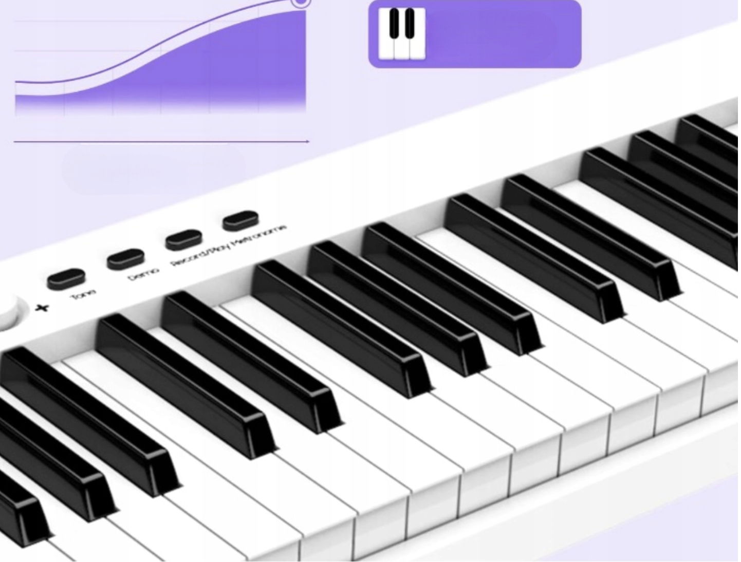 Zapewnia wygodny dotyk palców i podobną głębię klawiszy, a głośność zostanie zmieniona w zależności od siły gry na pianinie, zapewnia podobne uczucie dotyku fortepianu i pozwala grać na różnych poziomach głośności od miękkiego do mocnego, lepszego dla emocjonalnych występów muzyka