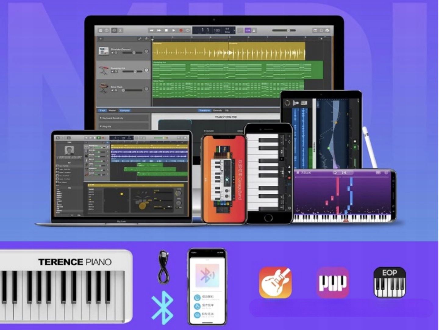 ✅ Łączność Bluetooth – bezprzewodowa współpraca z aplikacjami do nauki i produkcji muzyki