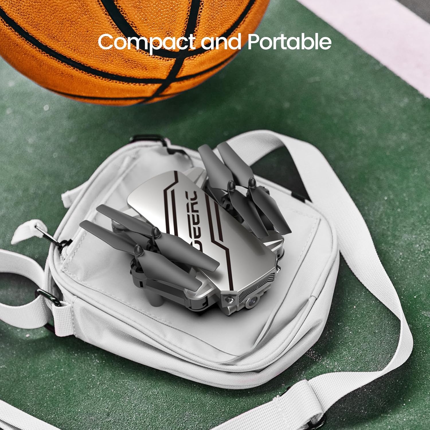 Mini dron DEERC D20 dla dzieci z kamerą FPV HD 720P, składany quadkopter zdalnie sterowany dla chłopców i dziewcząt z funkcją utrzymywania wysokości, trybem bezgłowym, uruchamianiem jednym klawiszem, funkcją Tap Fly, przerzucaniem 3D, 2 bateriami modułowymi