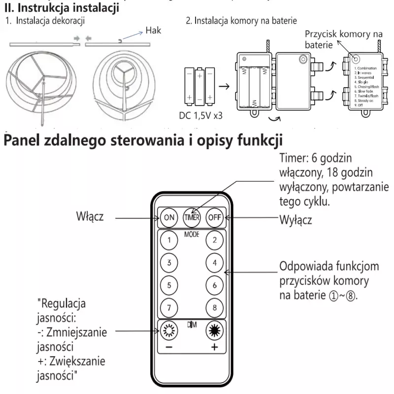 Dzięki 50 diodom LED zapewnia delikatne oświetlenie, zestaw można zamontować praktycznie wszędzie, gdyż jest niezależny od gniazdek energetycznych. Posiada klasę szczelności IP44 i można powiesić na dworze. Zasilanie z baterii daje nam poczucie bezpieczeństwa gdy w pobliżu bawią się dzieci.