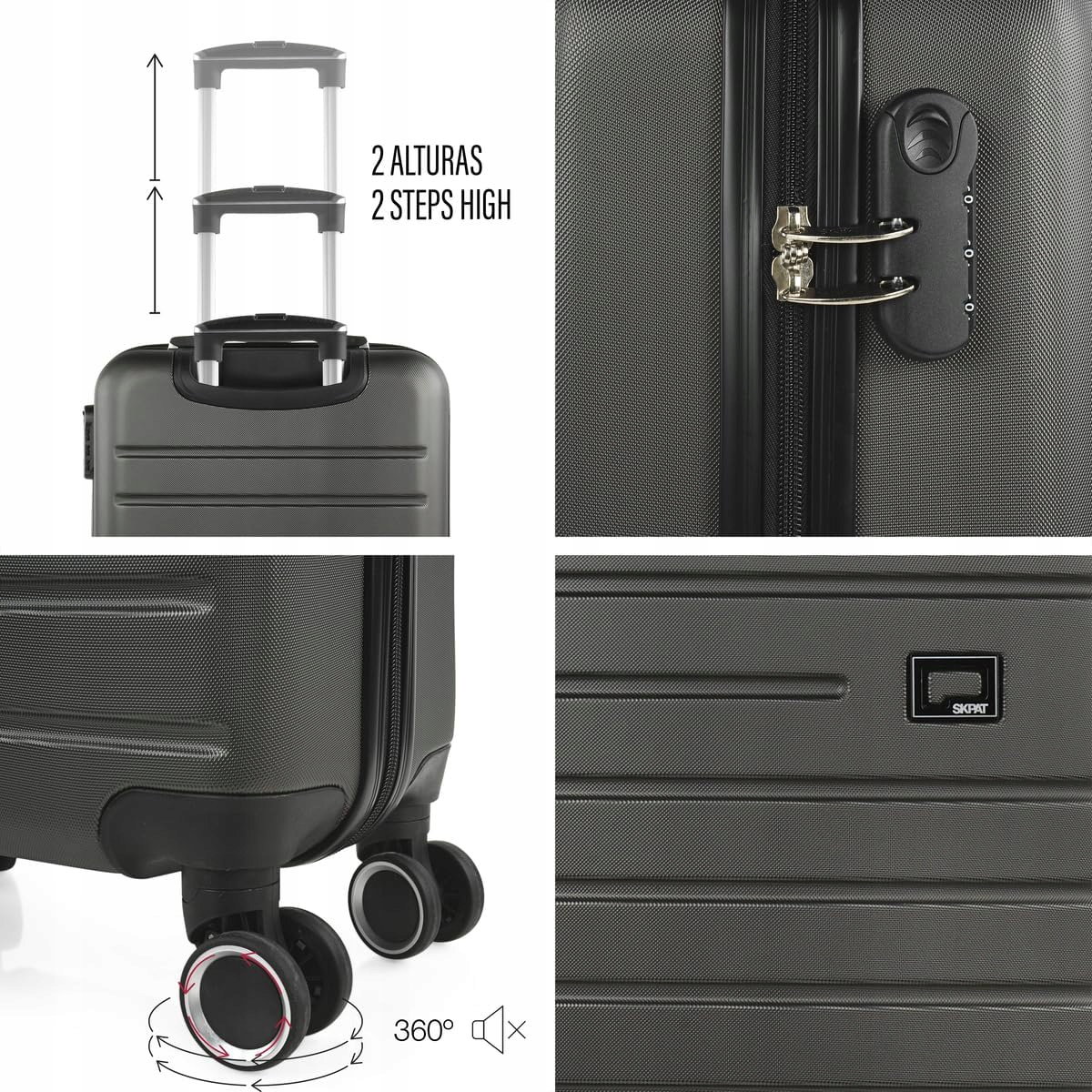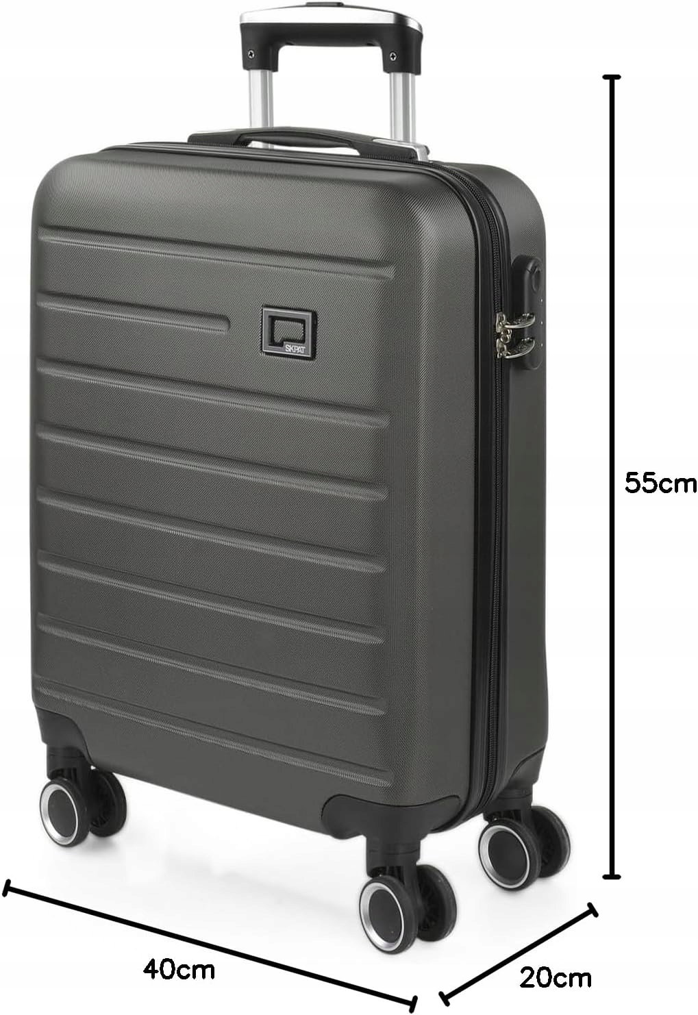 SKPAT - Sztywna walizka kabinowa - Mała walizka podróżna na kółkach - Walizka na bagaż podręczny z ABS z teleskopową rączką - Lekka walizka z zamkiem szyfrowym TSA - Bagaż kabinowy w rozmiar, Antracyt