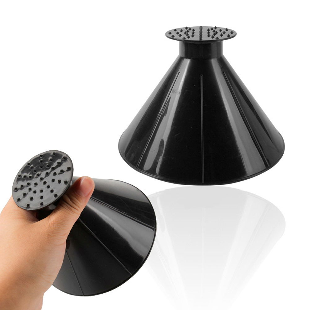 Stożkowa forma sprawia, że skrobaczka jest wygodna w użytkowaniu i dobrze leży w dłoni. Jej kompaktowy rozmiar ułatwia dotarcie nawet do trudno dostępnych miejsc, a szeroka krawędź robocza pozwala szybko i bez wysiłku pozbyć się lodu.