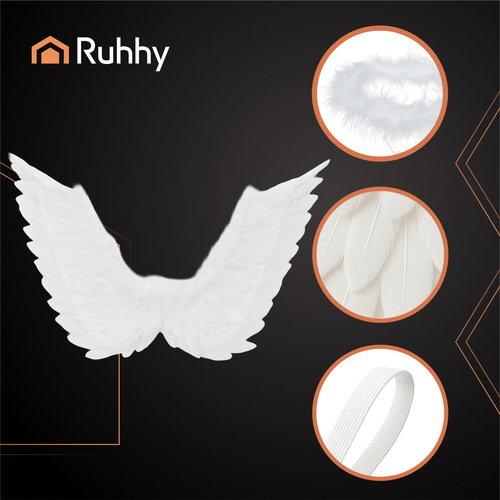 - klasyczny, śnieżnobiały kolor i pierzaste wykończenie nadają całości realistyczny, eteryczny wygląd – doskonały do stworzenia anielskiego klimatu lub postaci fantasy