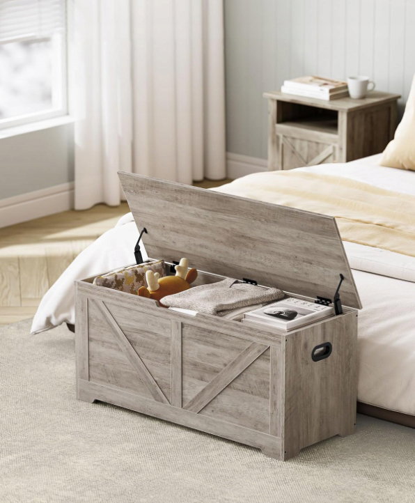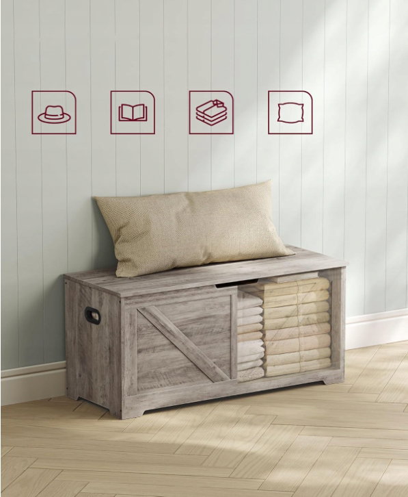 - ✴️【2 ZAWIASY DLA BEZPIECZEŃSTWA】 2 mocne zawiasy pozwalają pokrywie tej ławki do przechowywania bezpiecznie otworzyć się pod dowolnym kątem, zapobiegając przytrzaśnięciu palców