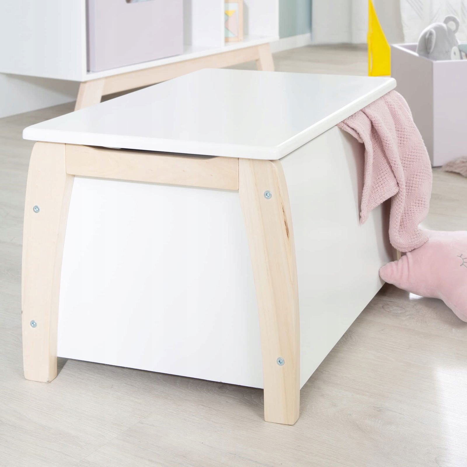 Skrzynia ROBA to praktyczny dodatek do pokoju dziecięcego, który łączy funkcjonalność z estetyką.