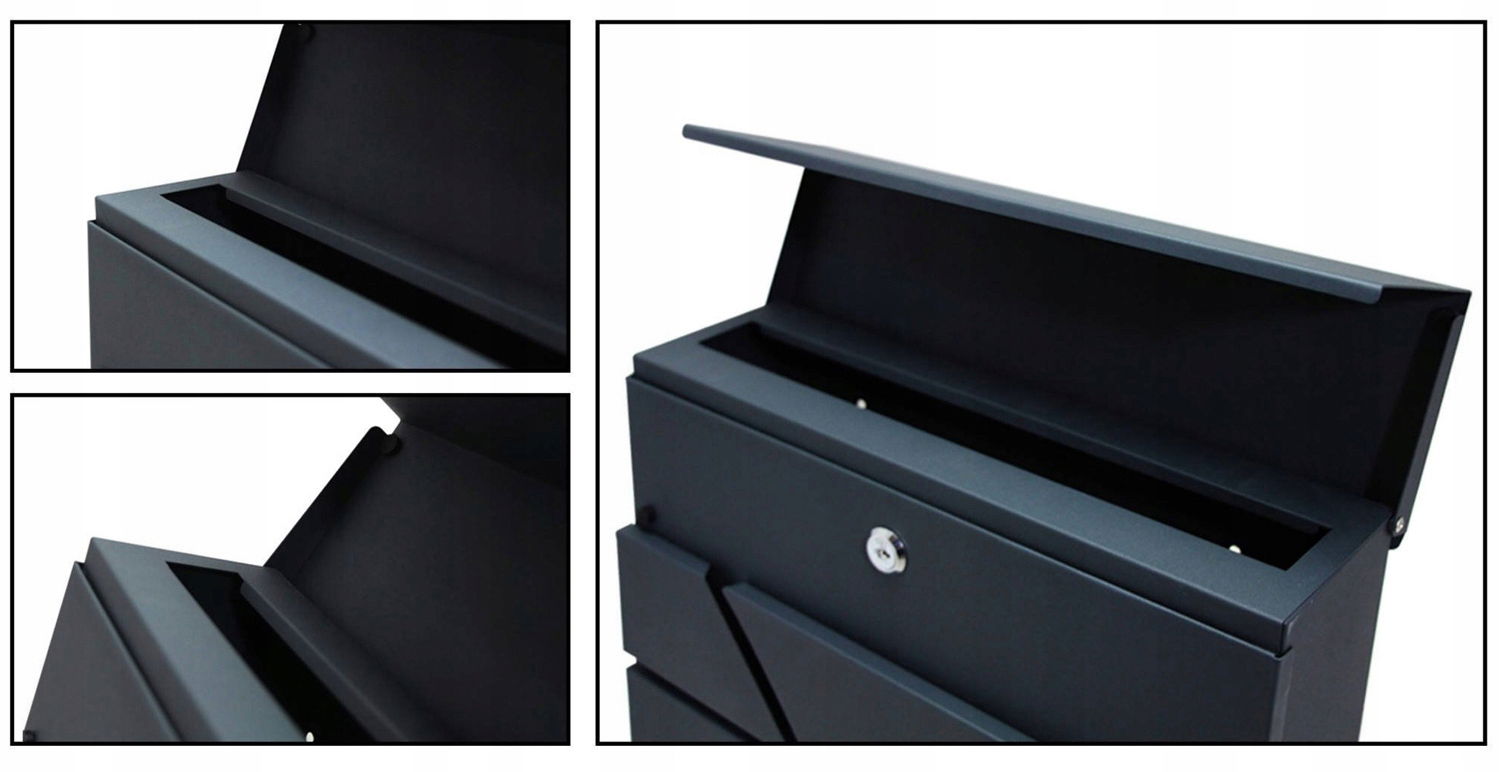 - Zabezpieczony wrzut i zamek: Osłona przed warunkami atmosferycznymi zapewnia ochronę Twojej korespondencji.