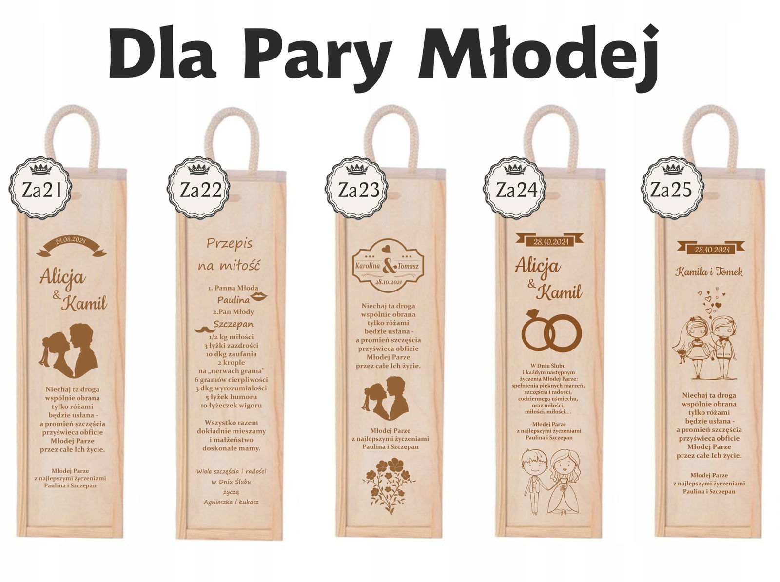 • numeru wybranego wzoru oraz informacje niezbędne do personalizacji projektu (imiona, data)