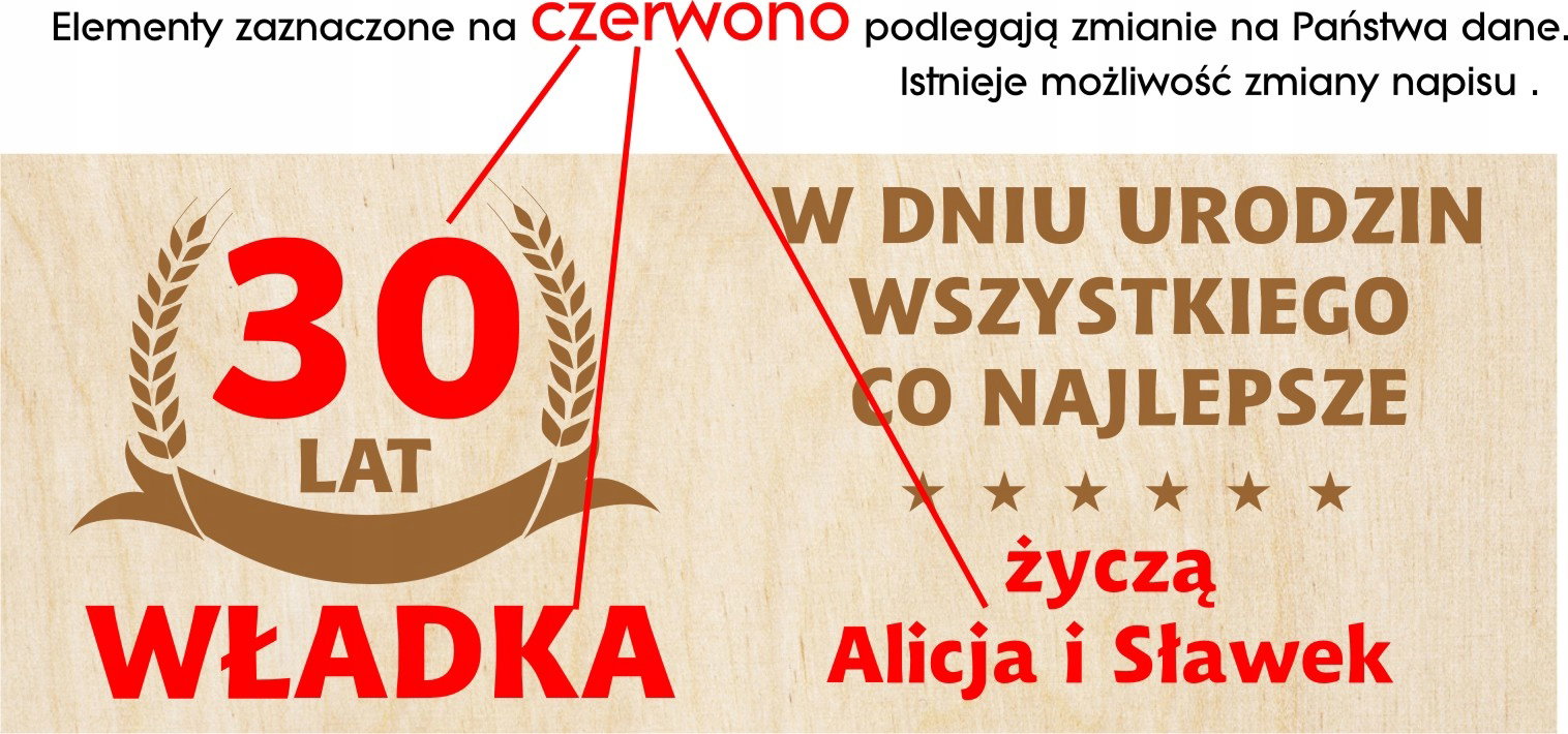 - Jeżeli korzystasz z gotowego wzoru podaj jego symbol oraz treści odmienne. Symbol wybranych życzeń znajduje się nad przykładowym zdjęciem.