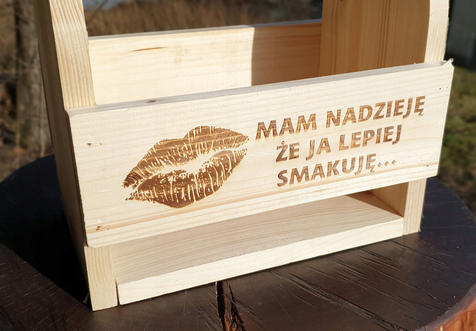 Grawer jest wykonany bezpośrednio na skrzynce.Jest to nie tylko praktyczny upominek ale i efektowny dodatek do wnętrz.