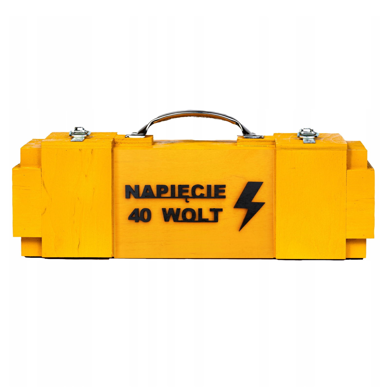 Skrzynka Napięcie 40 Wolt + piersiówka + whisky stones + szklanka + kieliszek