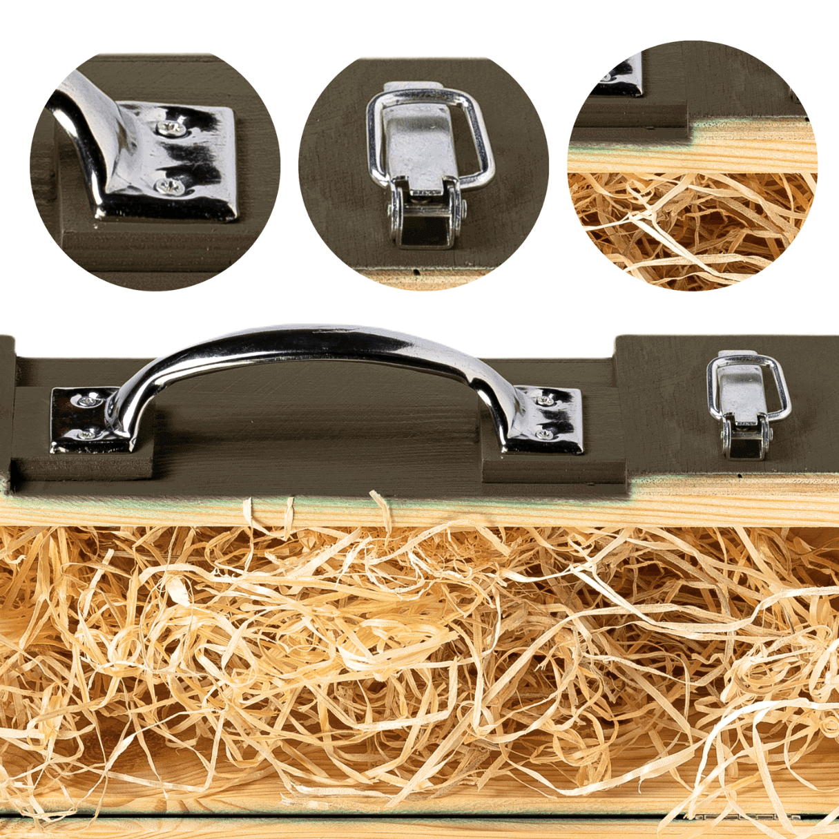 ✅ Elegancja: Metalowe klamry i rączka podkreślają ekskluzywny charakter skrzynki, dodając jej wyjątkowego uroku.