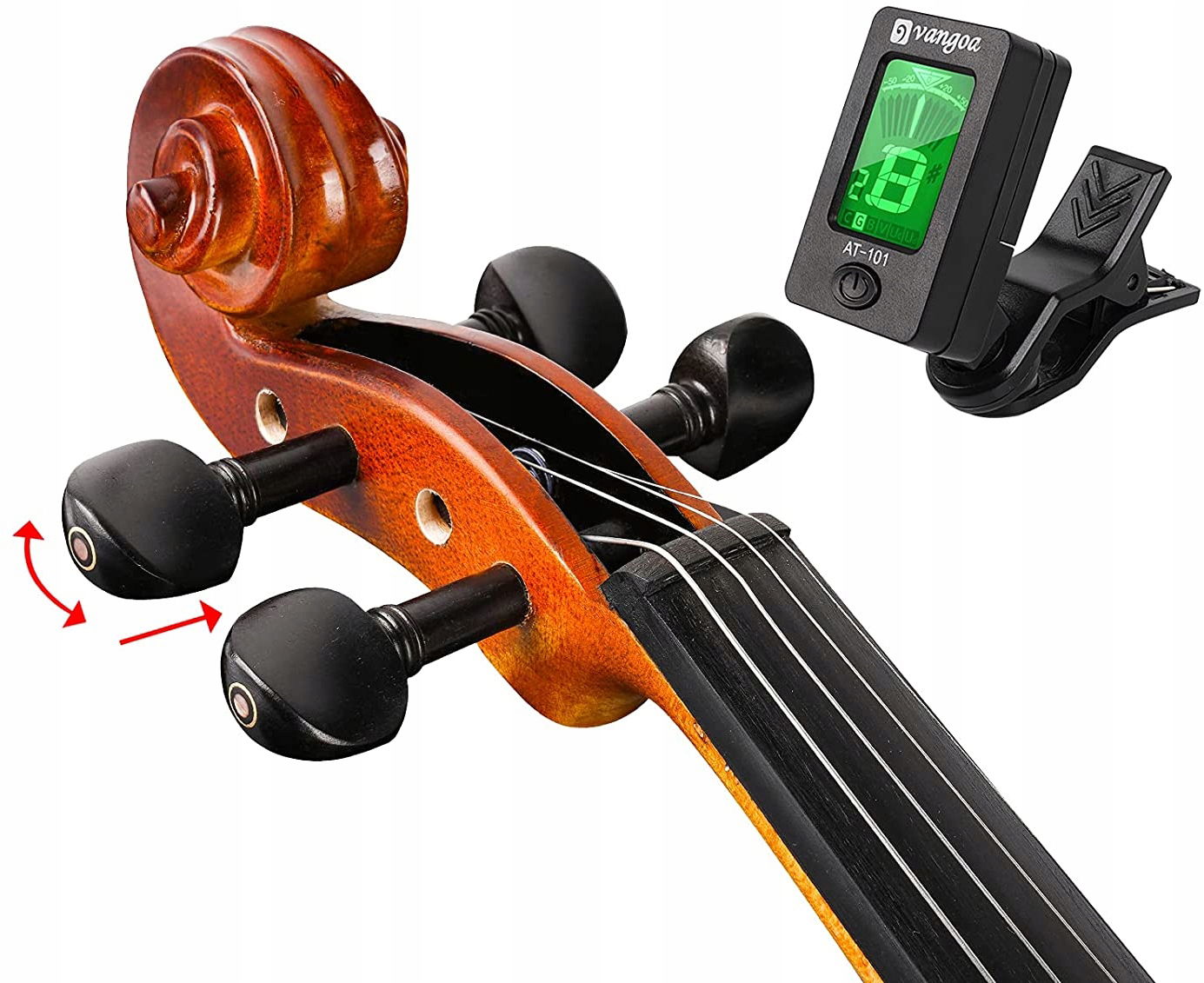 Zestaw do skrzypiec akustycznych Vangoa jest dostarczany z tunerem, który pomoże graczowi dostroić skrzypce. Możesz również pobrać aplikację pomocniczą.