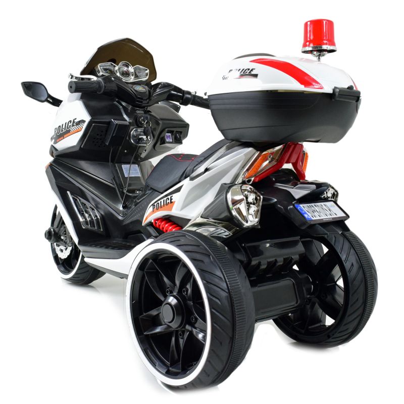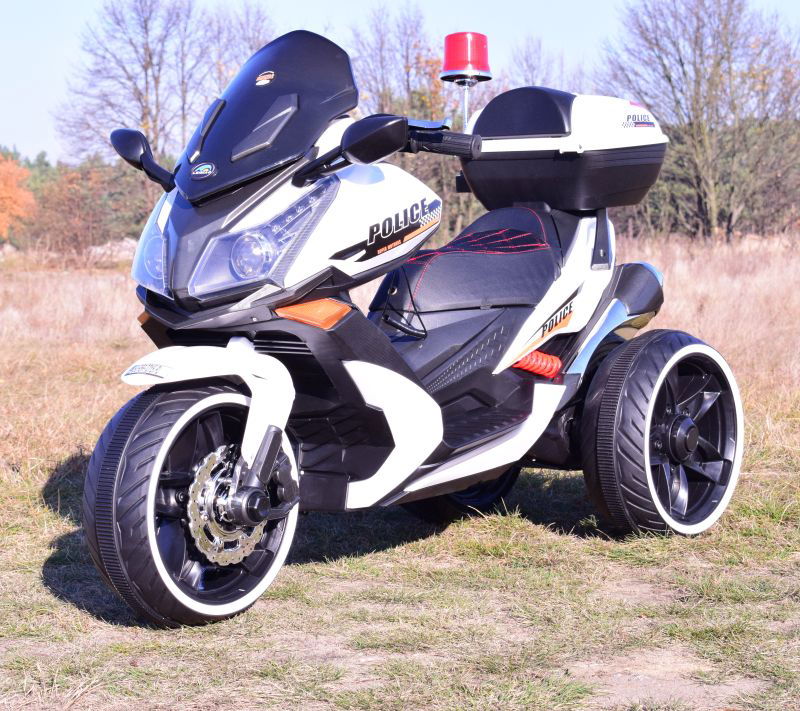 SKUTER POLICYJNY napędzany dwoma silnikami 45 W z całą pewności zainteresuje młodego wielbiciela motocykli. Skuter jest olbrzymi - jest to największy skuter w naszej ofercie.