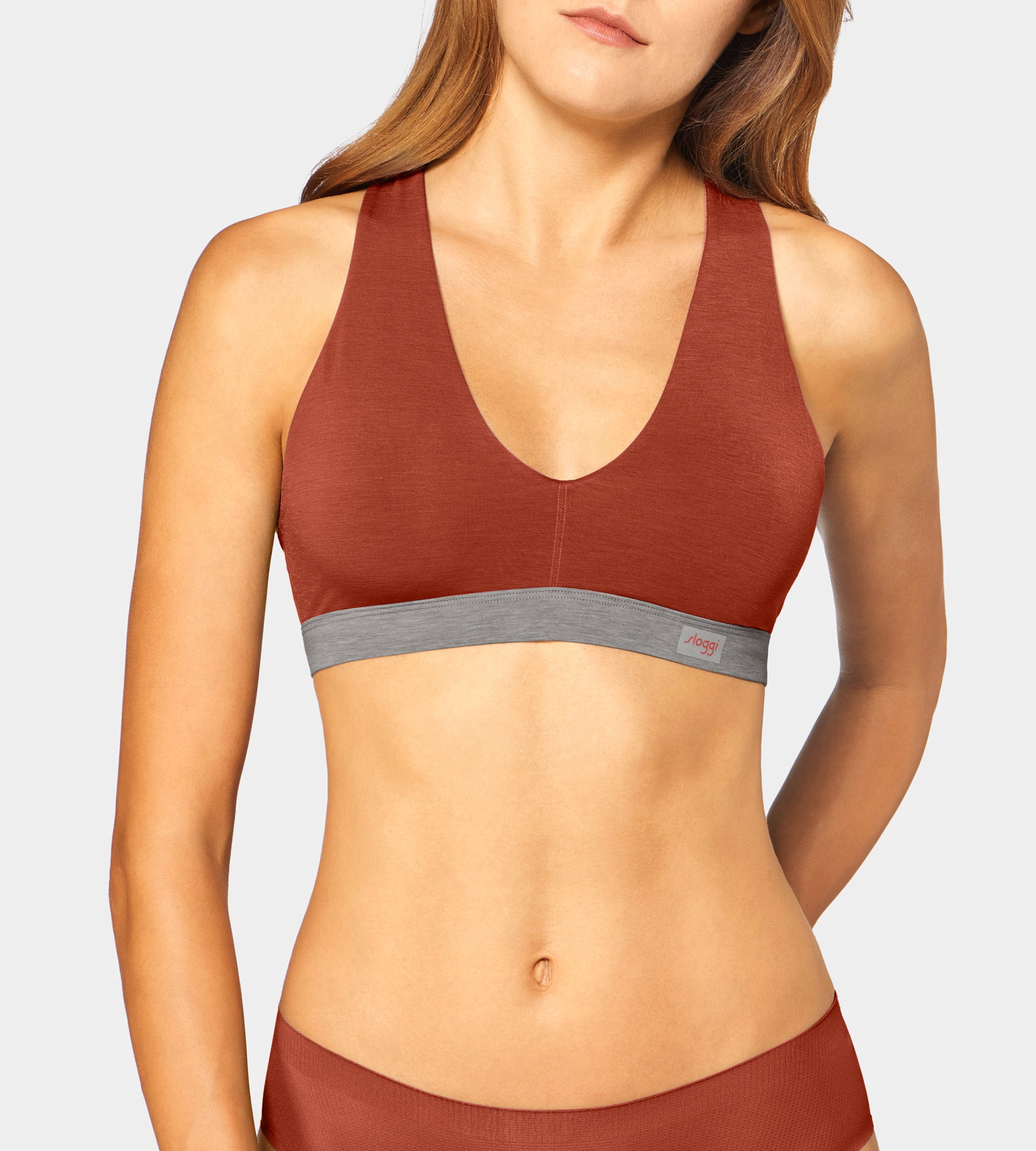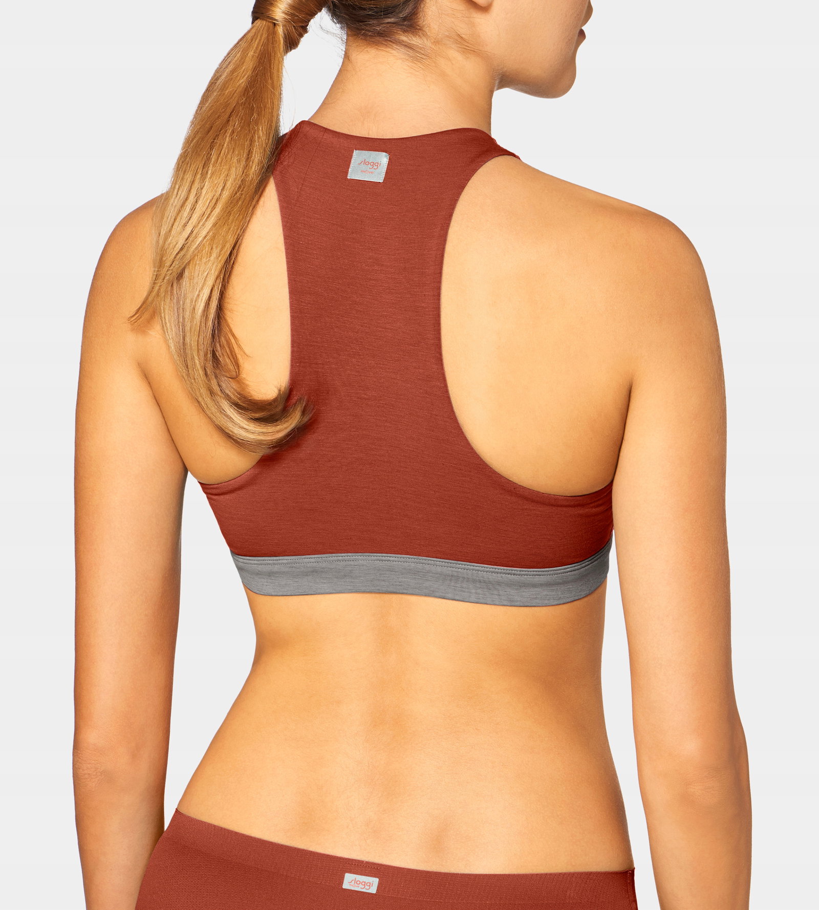 - Pod biustem szeroka, elastyczna taśma z odblaskowym logo sloggi zapewnia dobrą stabilizację i wsparcie dla biustu,