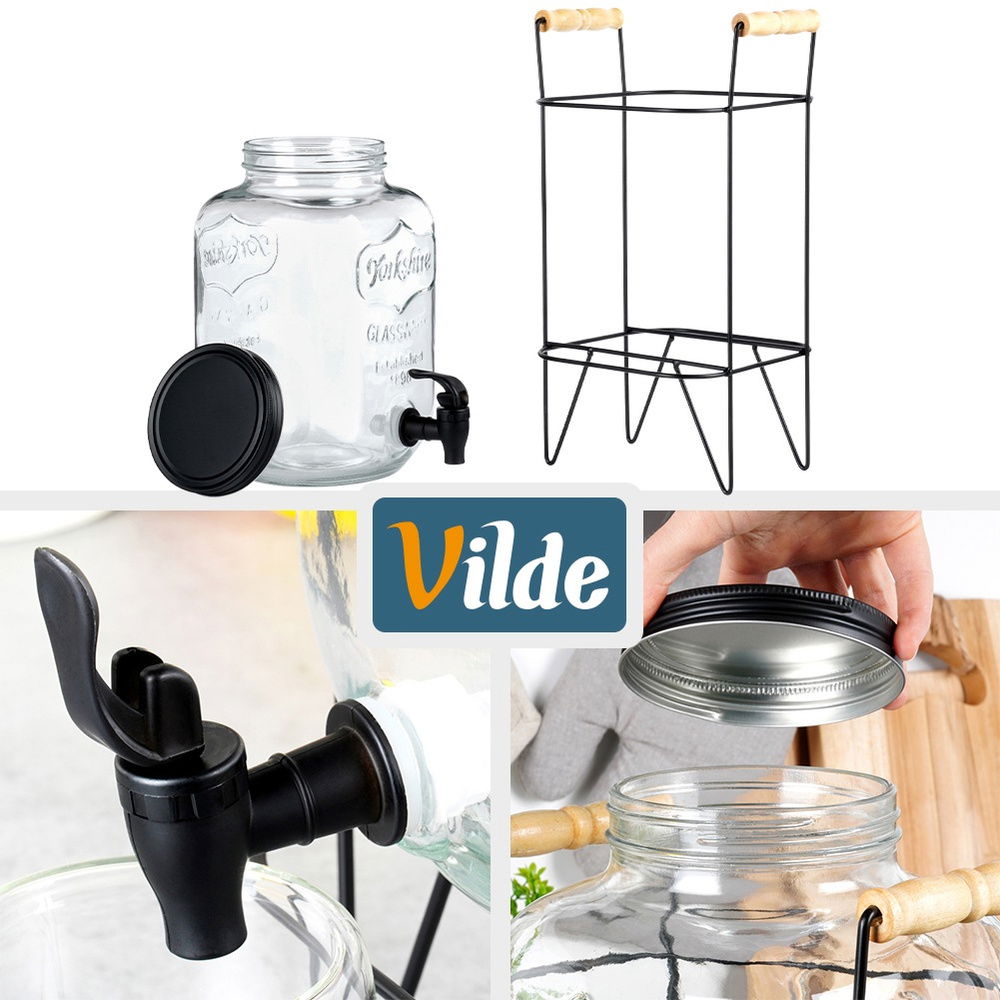 Wykonany z grubego szkła - Słój wykonany z najwyższej jakości grubego szkła. Posiada tłoczone napisy, które prezentują się efektownie. Stojak i pokrywa wykonany jest z najwyżej jakości metalu w czarnym kolorze, posiada uchwyty wykonane z drewna, a kranik wykonany jest z tworzywa w czarnym.
